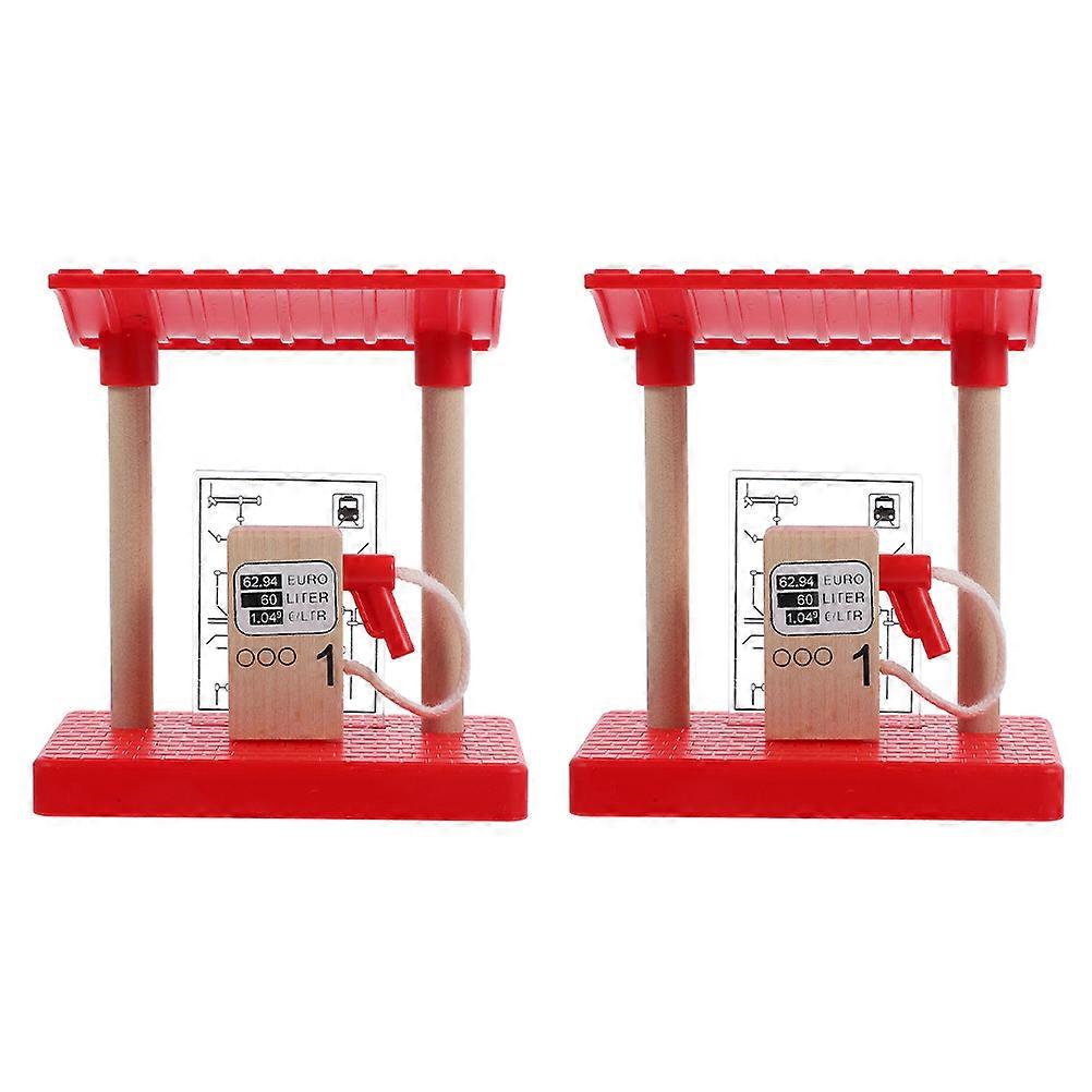 Wooden Fire Train Track Accessories for Kids Pretend Play Gas Station 2Pcs