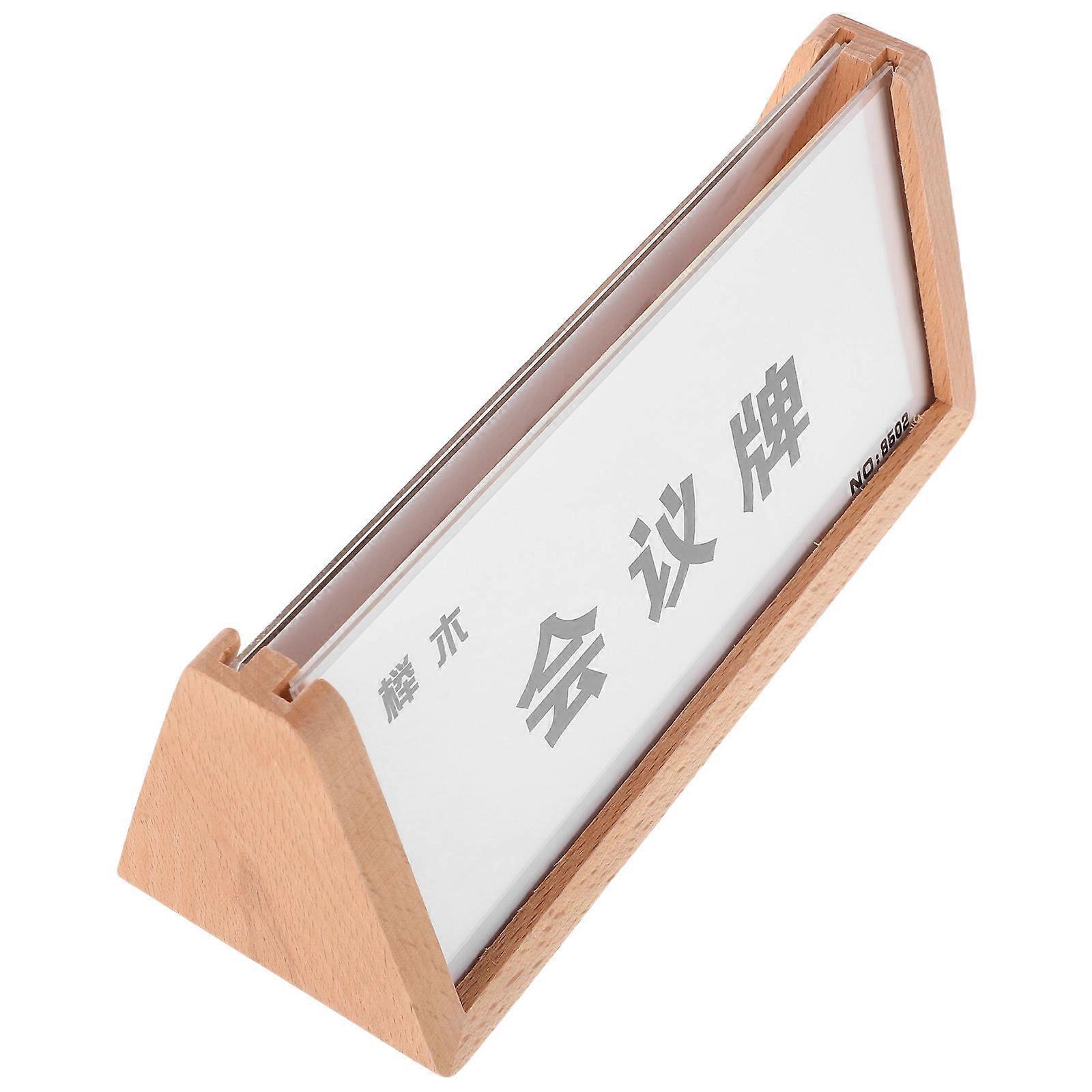 Meeting Sign Acrylic Table Sign Holder for Desktop Use with Wood Base