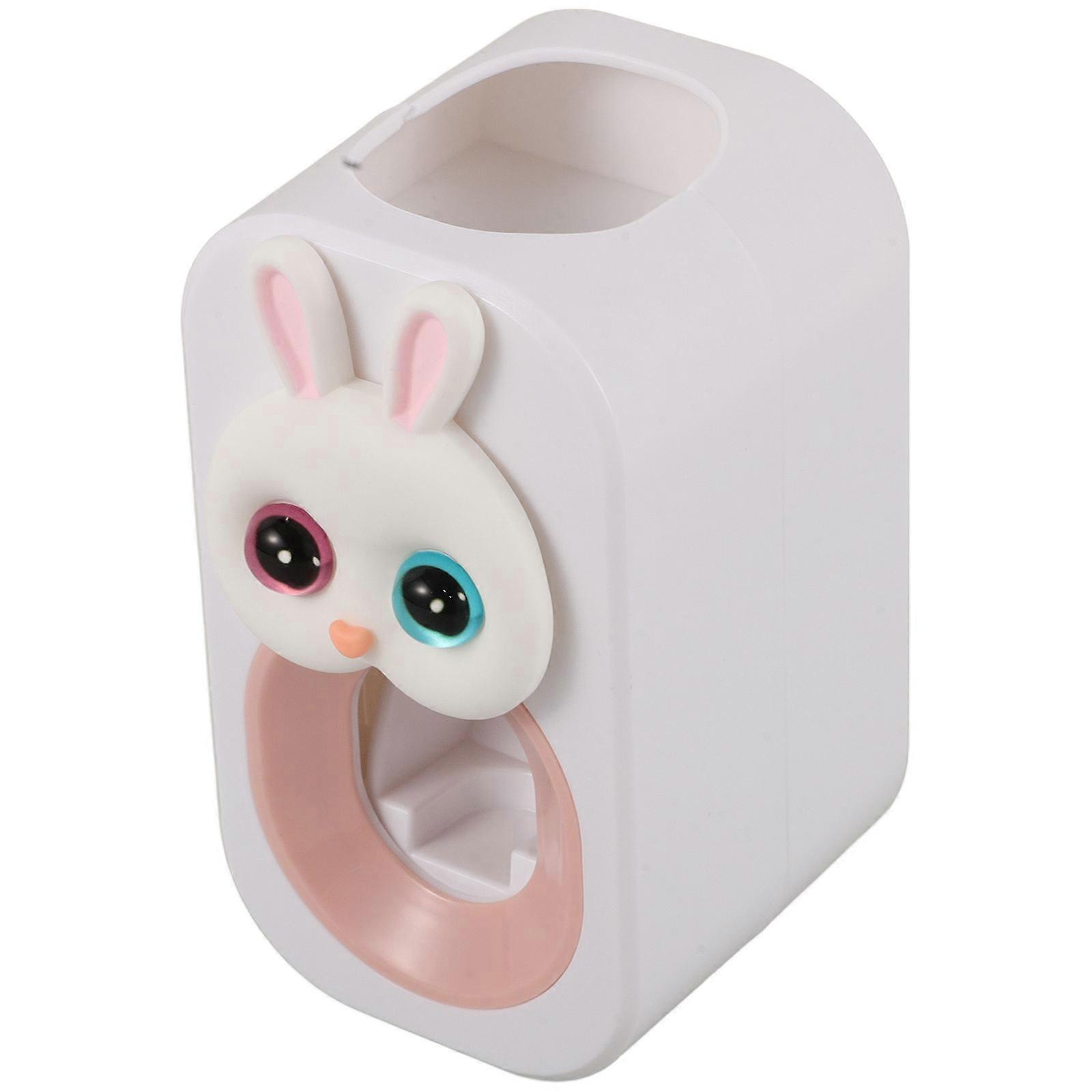 Pink Toothpaste Dispenser Cartoon Bunny for Bathroom Use Convenient Dispenser