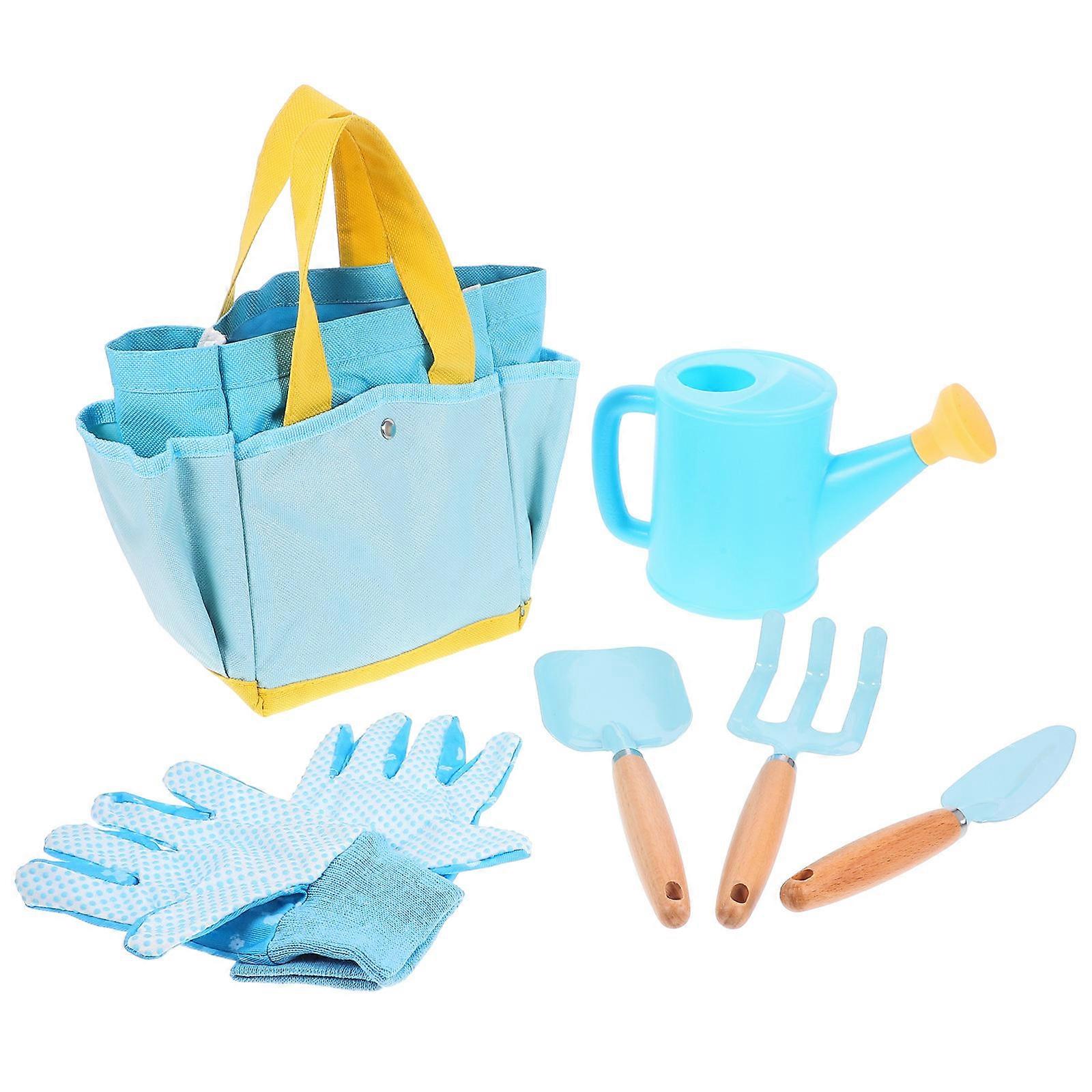 This is small gardening and planting tools, which contains many tools. They can help you loosen the soil, planting, which is very practical. They are small in size and can also be given to a child to explore the world of plants on his own. Features -Color:Blue -Material:Beech, PP, PE, oxford cloth, iron, rubber and plastic, polyester-cotton and PVC -Size (wide ):21.30X7.00X2.20cm/8.37X2.75X0.86in -Size (pointed ):20.60X4.00X2.30cm/8.10X1.57X0.90in -Size (rake):21.40X6.20X3.20cm/8.41X2.44X1.26in -Size (glove):18.00X9.50X1.00cm/7.07X3.73X0.39in -Size (watering can):21.00X13.00X9.40cm/8.25X5.11X3.69in -Size (bag):18.00X12.00X10.50cm/7.07X4.72X4.13in - They are strong enough, not easily deformed or broken, and can be used for a long time. - The tool has strong practicability, which is suitable for garden, beach, courtyard, park, etc. - Can be used for transplanting, planting, loosening soil and weeding of flowers, vegetables, and seedlings. - A great gift selection for your kids or friends who like gardening. It gives you a comfortable grip, not tired after holding for a long time. - Bright colors add fun to the children's gardening activities. Eye-catching and lovely, bring more fun to kids. Package list: 4 x 2 x Rake 2 x Pair of Gloves 2 x Watering Can 2 x Bag