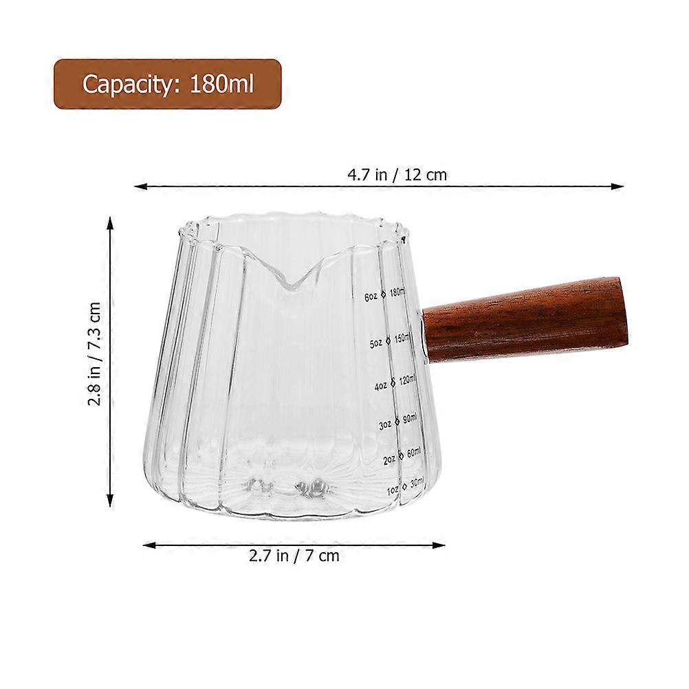 Milk Pitcher Glass with Wooden Handle for Kitchen Use 2Pcs