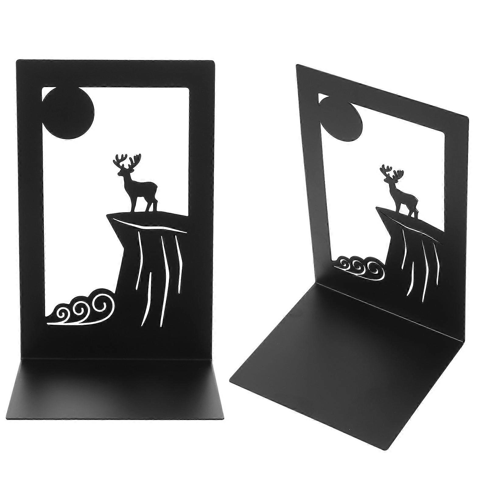 Book Ends Cliff Deer Design for Library Black Iron Book Holding 2Pcs