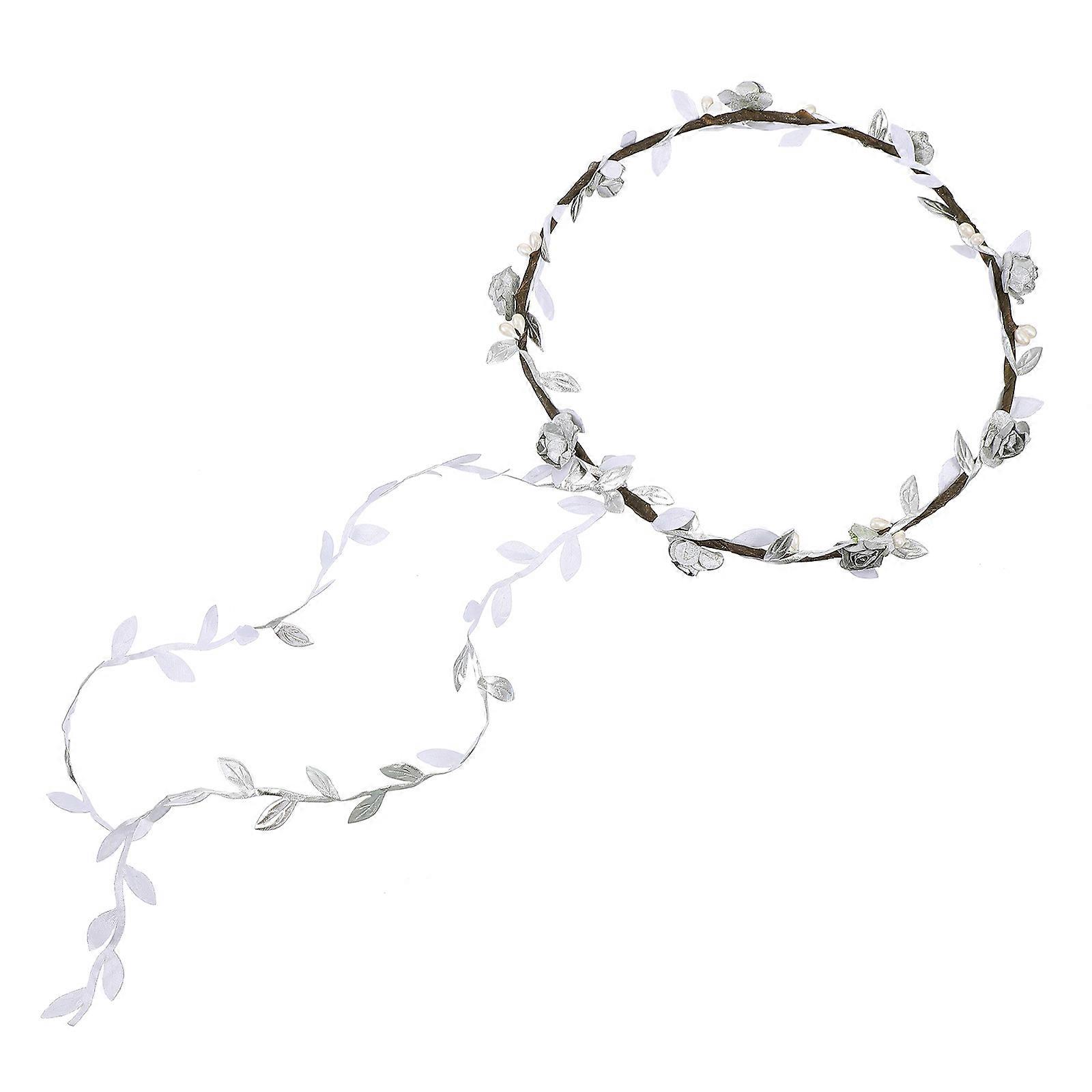 Floral Head Garland Bridal Flower Headband for Decoration 2Pcs Silver Cotton