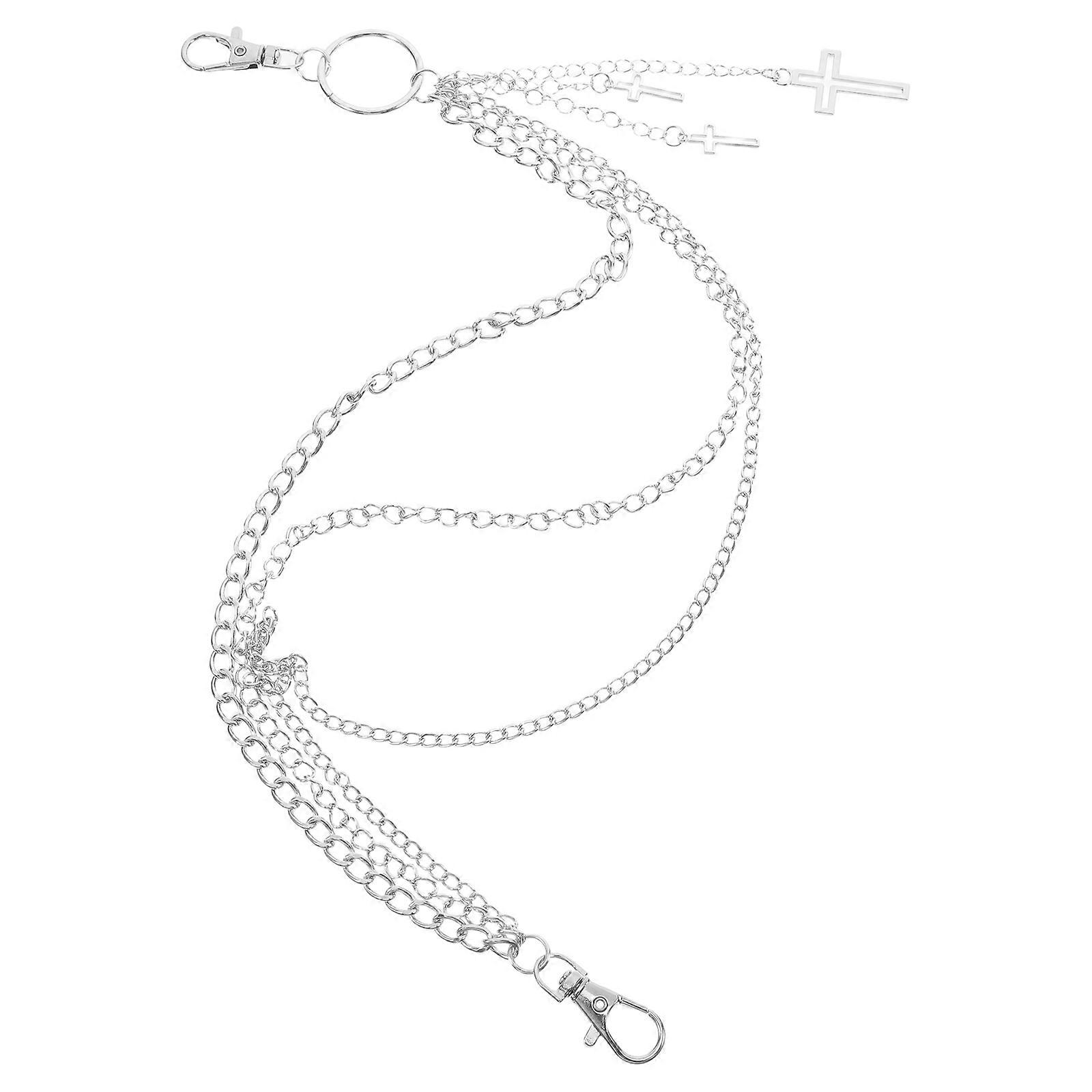Layered Cross Waist Chain for Men Women Hip Hop Style Silver Metal