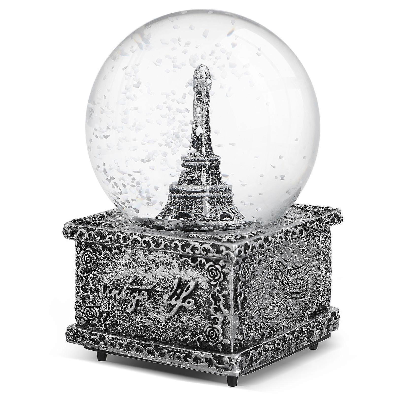 Charming Round Snowflake Music Box Vintage Tower Figurine Grey Ornament For Wedding Christmas New Year Decorations 1Pack