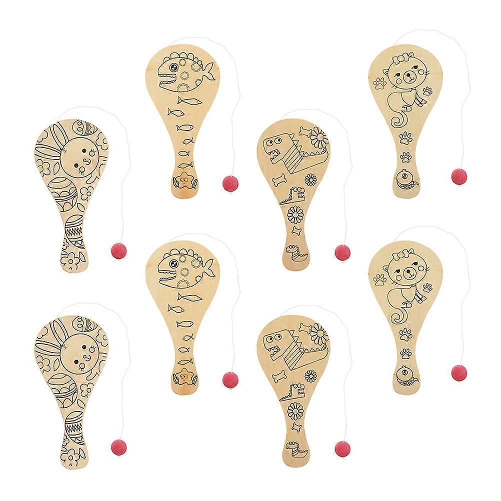 Kids Animal Style Rackets Painting Toy 8Pcs Wooden DIY Painting Paddles