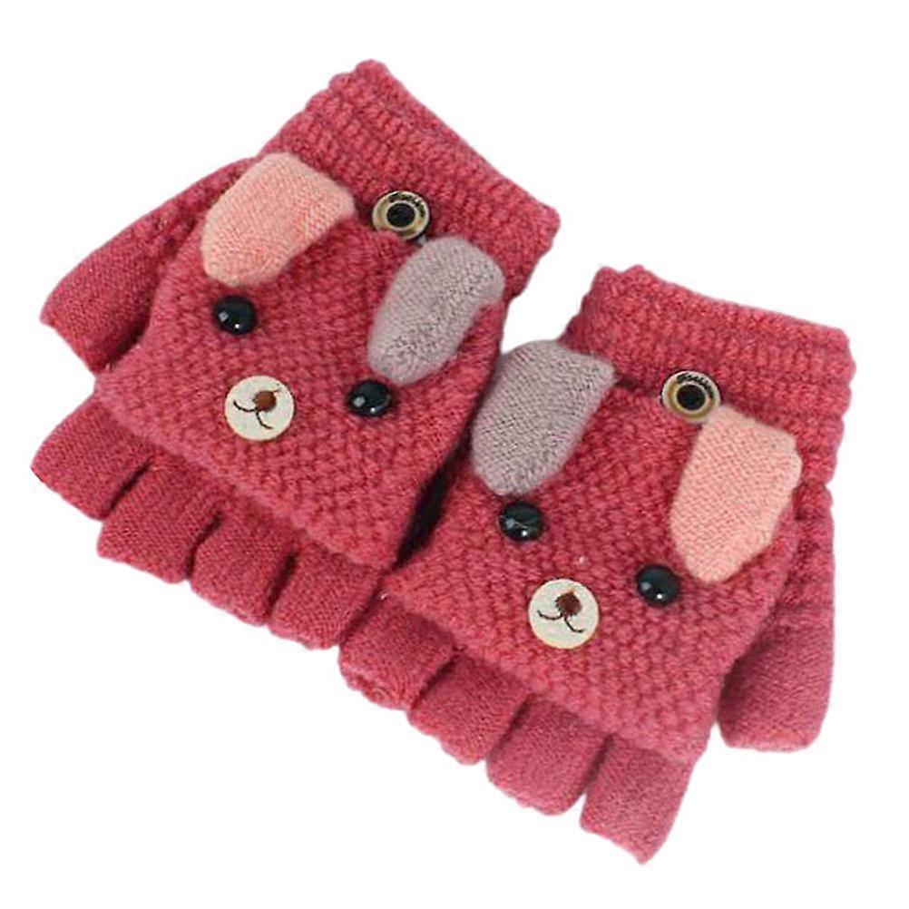 Cartoon Gloves Knitted Half-Finger Gloves for Cold Protection 3Pairs