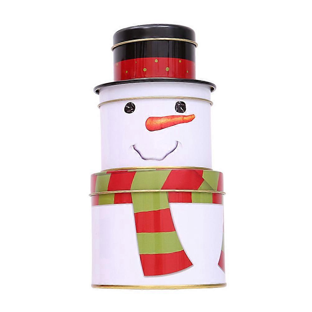 Christmas Candy Storage Jar Snowman Shaped Iron Box For Candies Three-Layer Food Container Gift Decoration 10x10x9cm 3Pcs