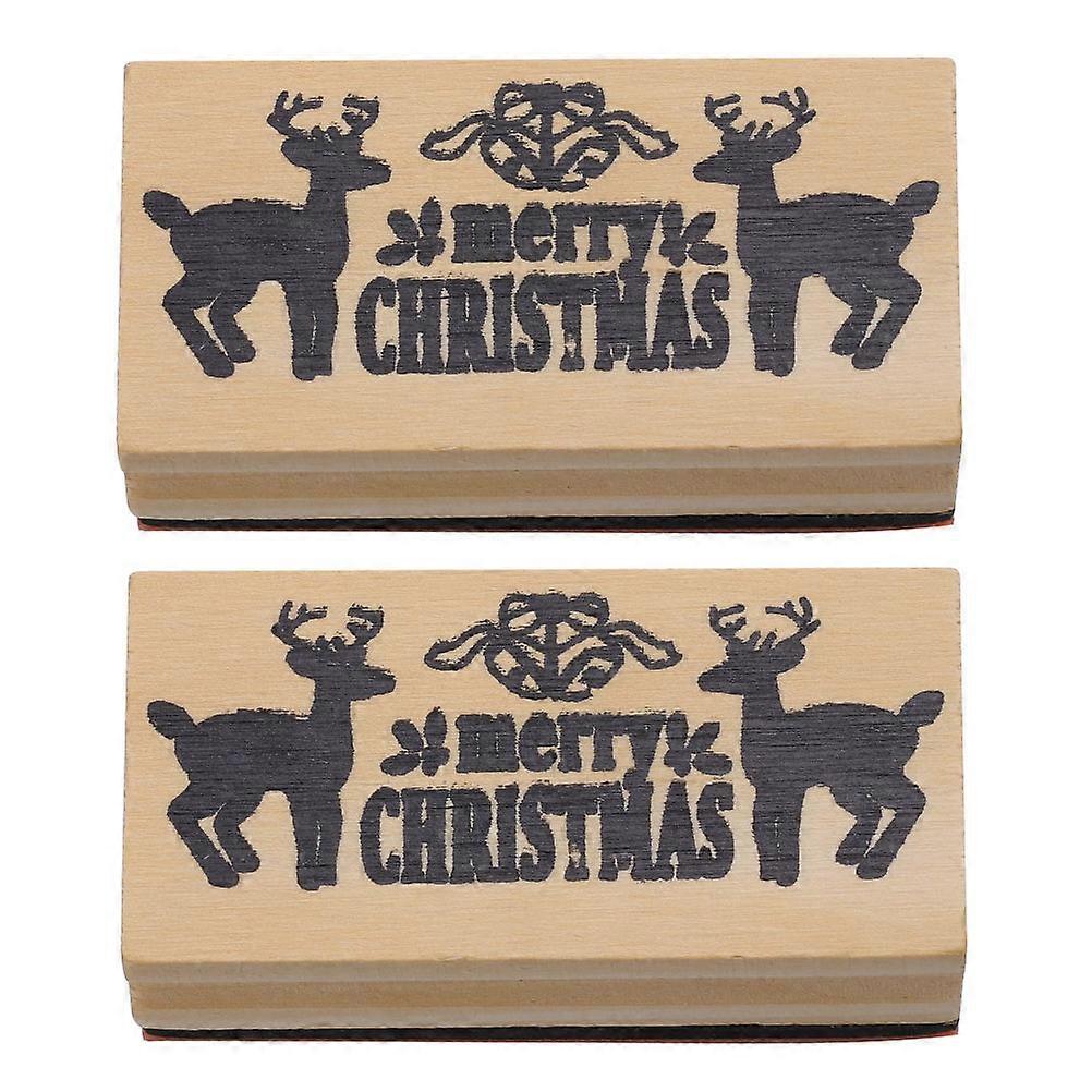 Merry Christmas Stamper Wood Seal Stamps for DIY Use 2Pcs Deer
