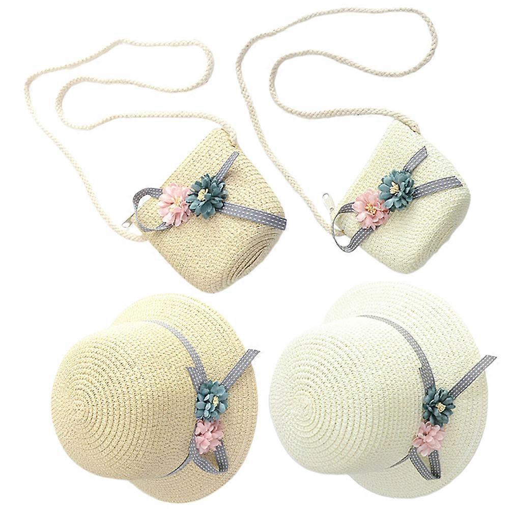 Kids Straw Hat and Beach Bag Set for Girls Fashionable 2Sets