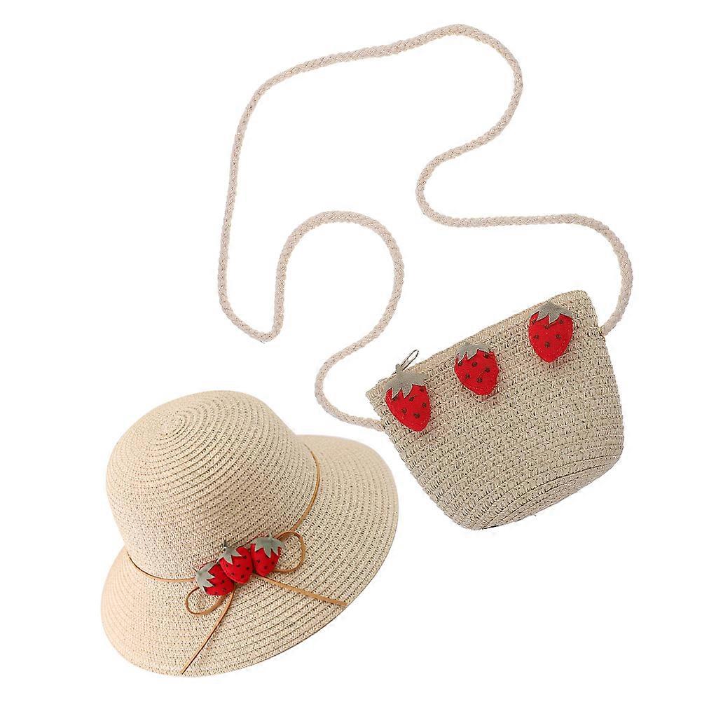 Girls Straw Hat and Shoulder Bag Set Featuring Summer Beach Sun Protection for Kids