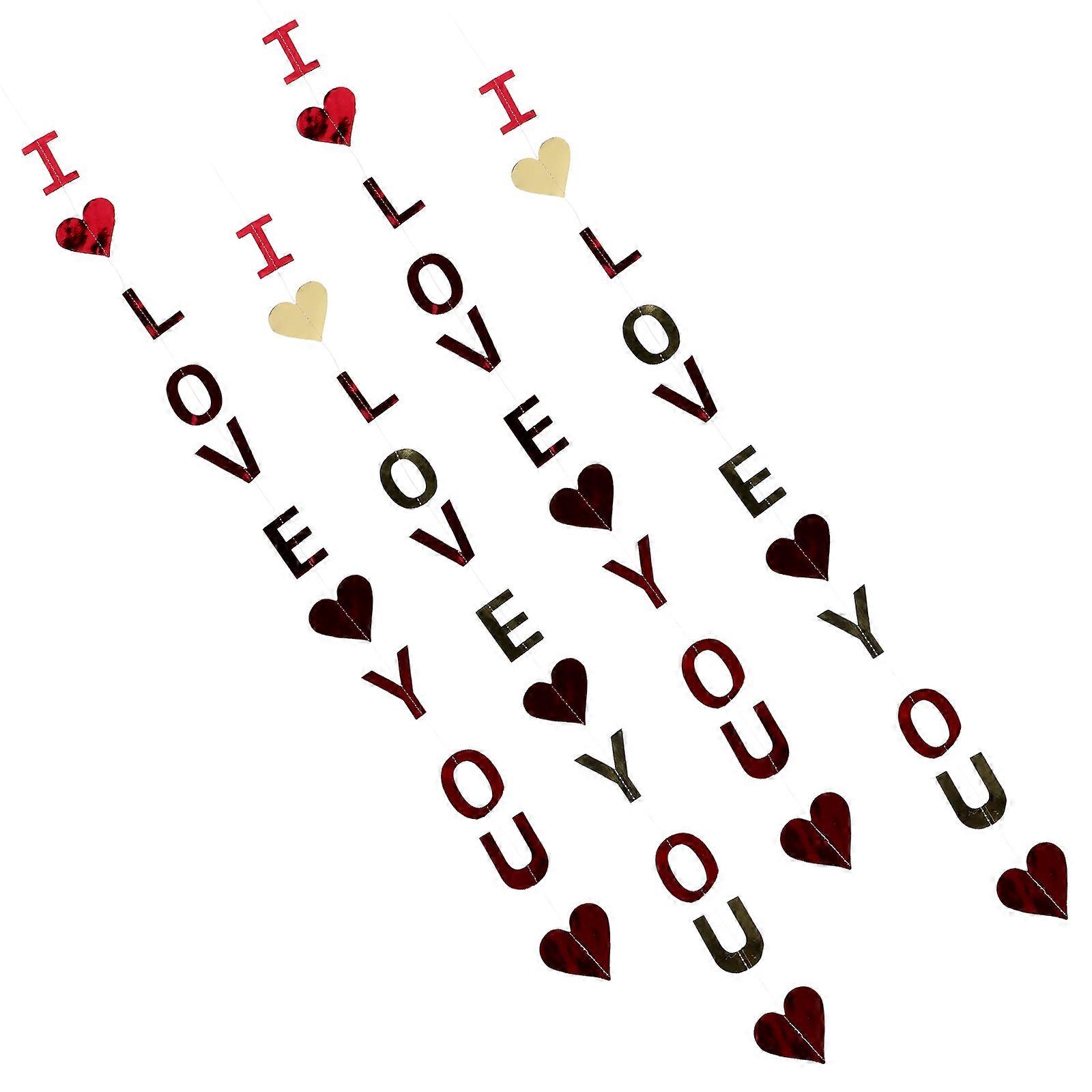 Valentines Hanging Banner Heart Shape Buntings Red Color Wedding Engagement Celebration Hanging Decoration 4Pcs