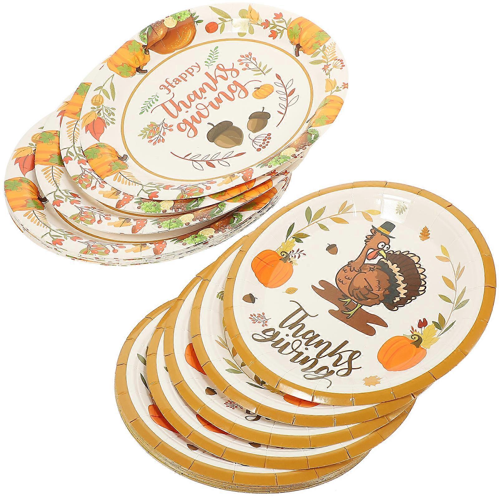 Thanksgiving Dessert Party Use Elegant Autumn Theme Multi Color 7 Inch 32Pcs