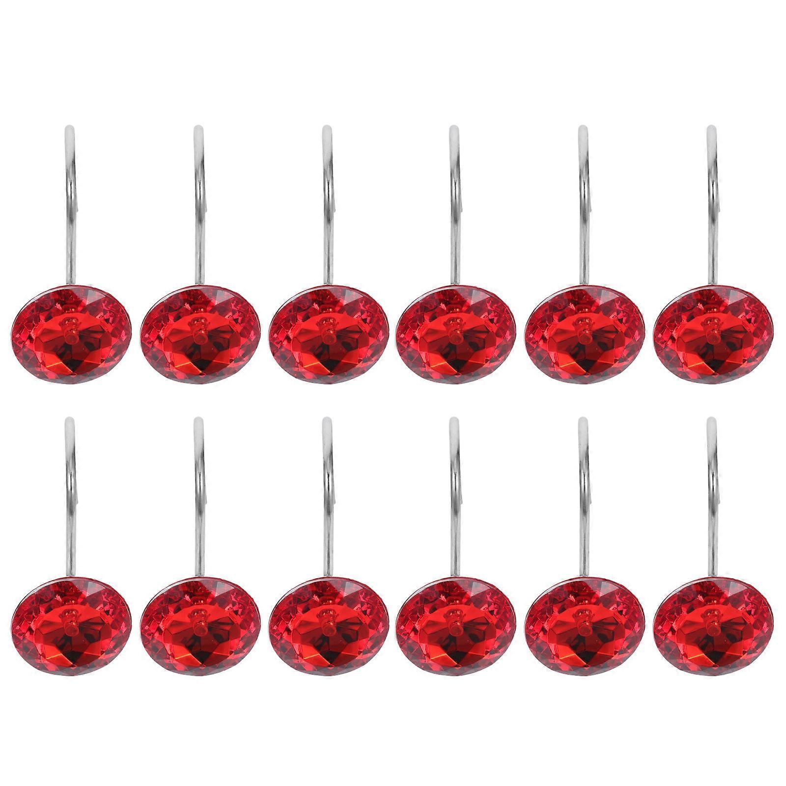 Red Acrylic Shower Curtain Hooks for 12Pcs Bathroom Hangers