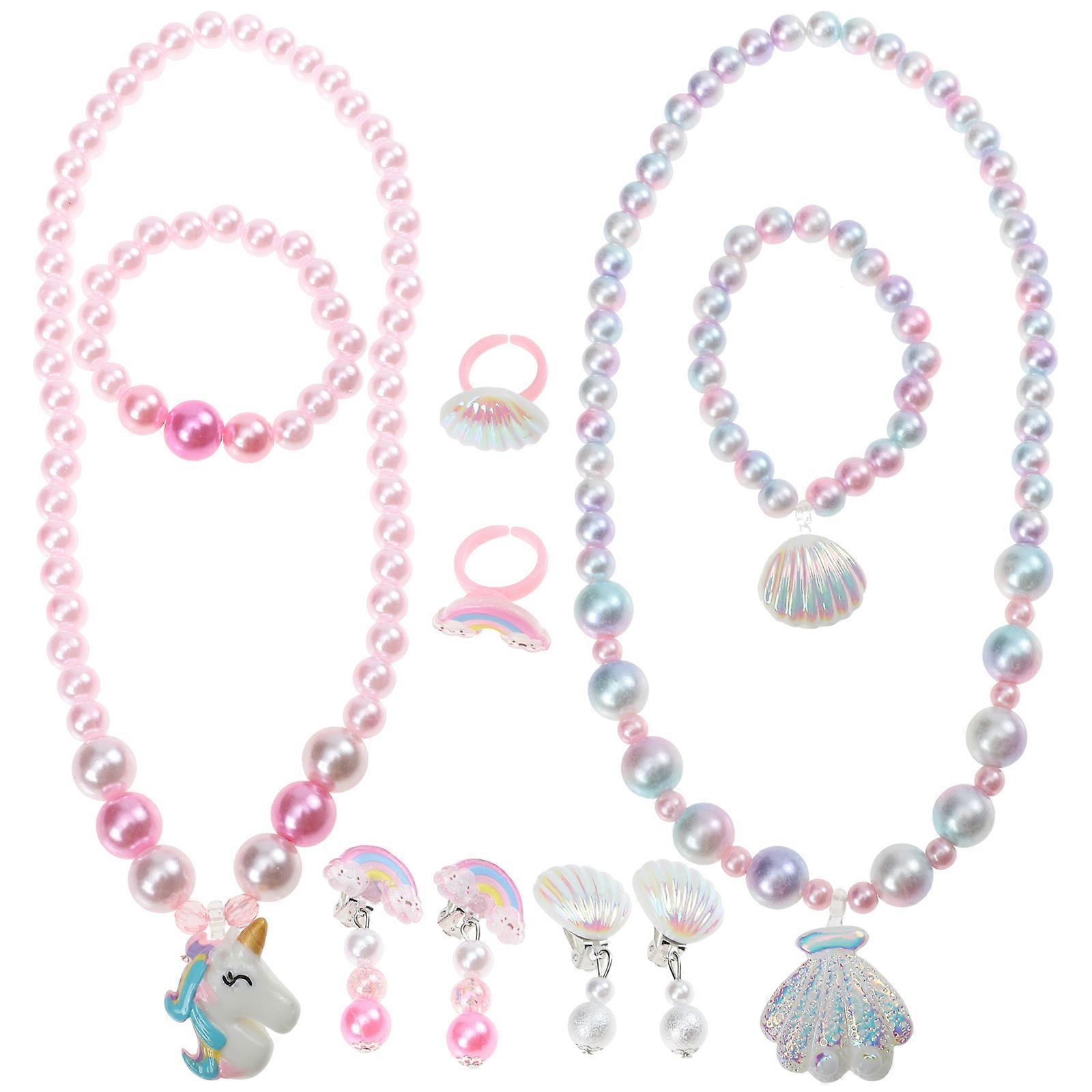 Children's Necklace Bracelet Earring Ring Set for Kids 2Sets Pink Fashion Jewelry