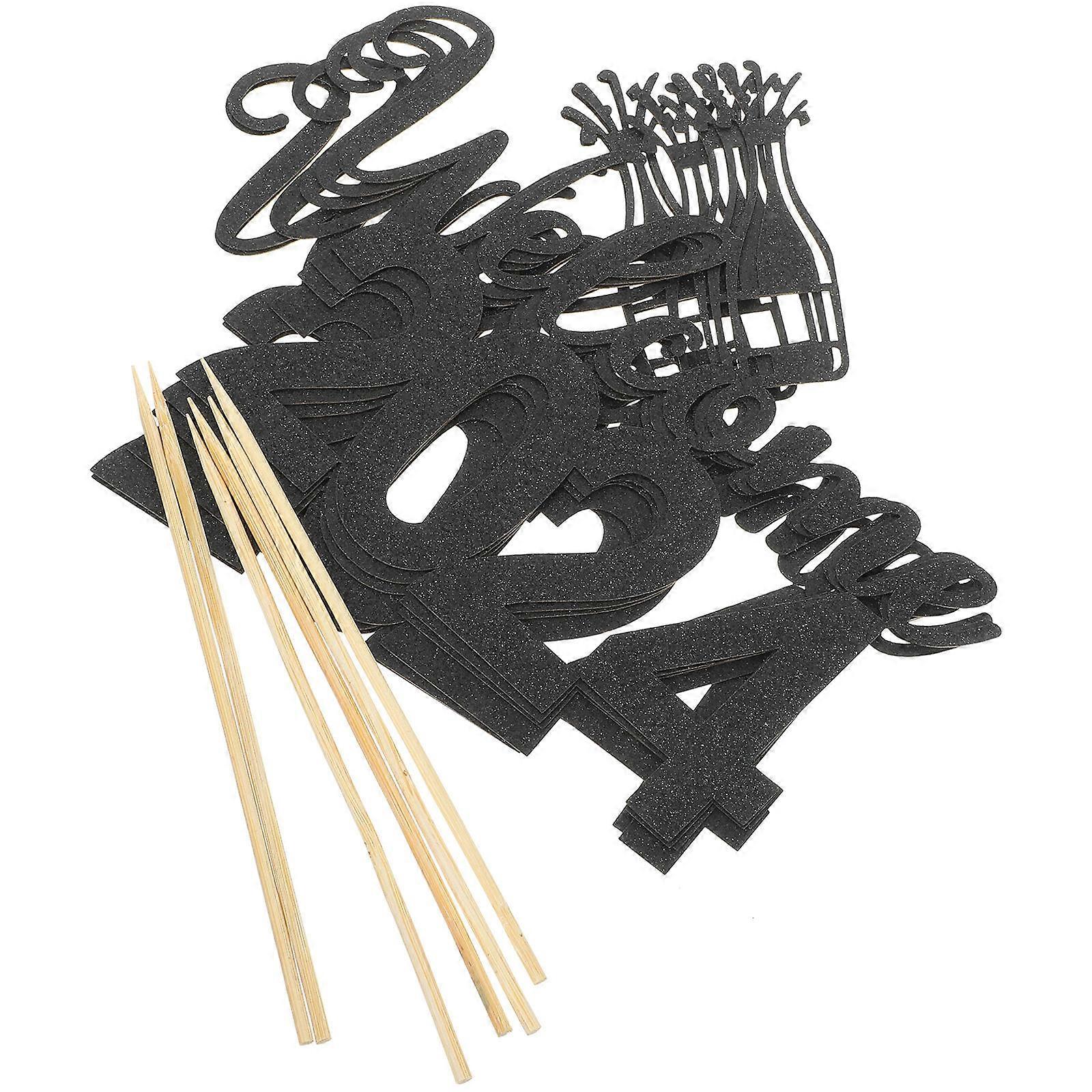 Decorative Props New Year Cupcake Toppers Black Color Pastries 15.50X12.00X0.10cm Festive Celebration 6Pcs