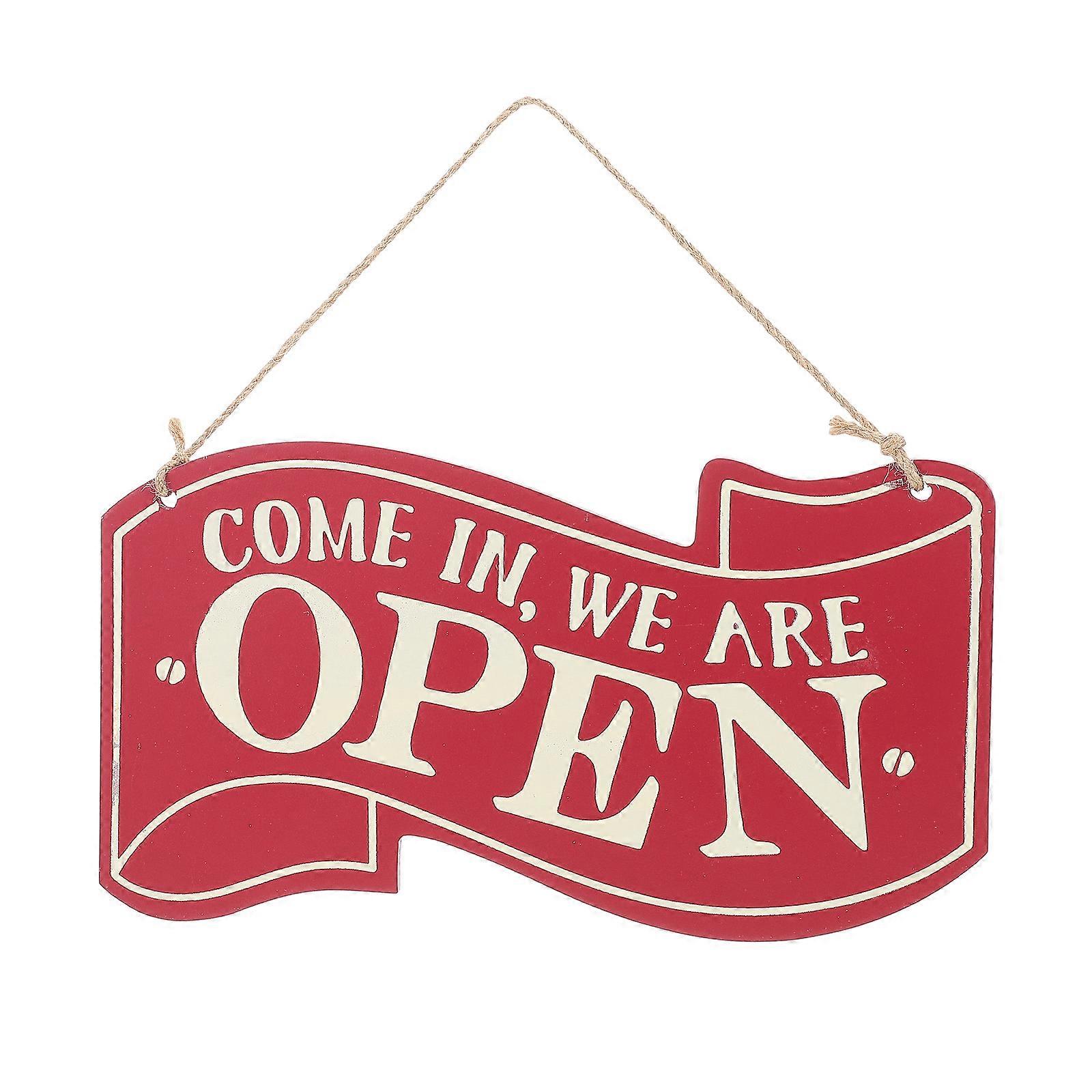 Red Wooden Double-Sided Door Sign Open Closed Sign for Store