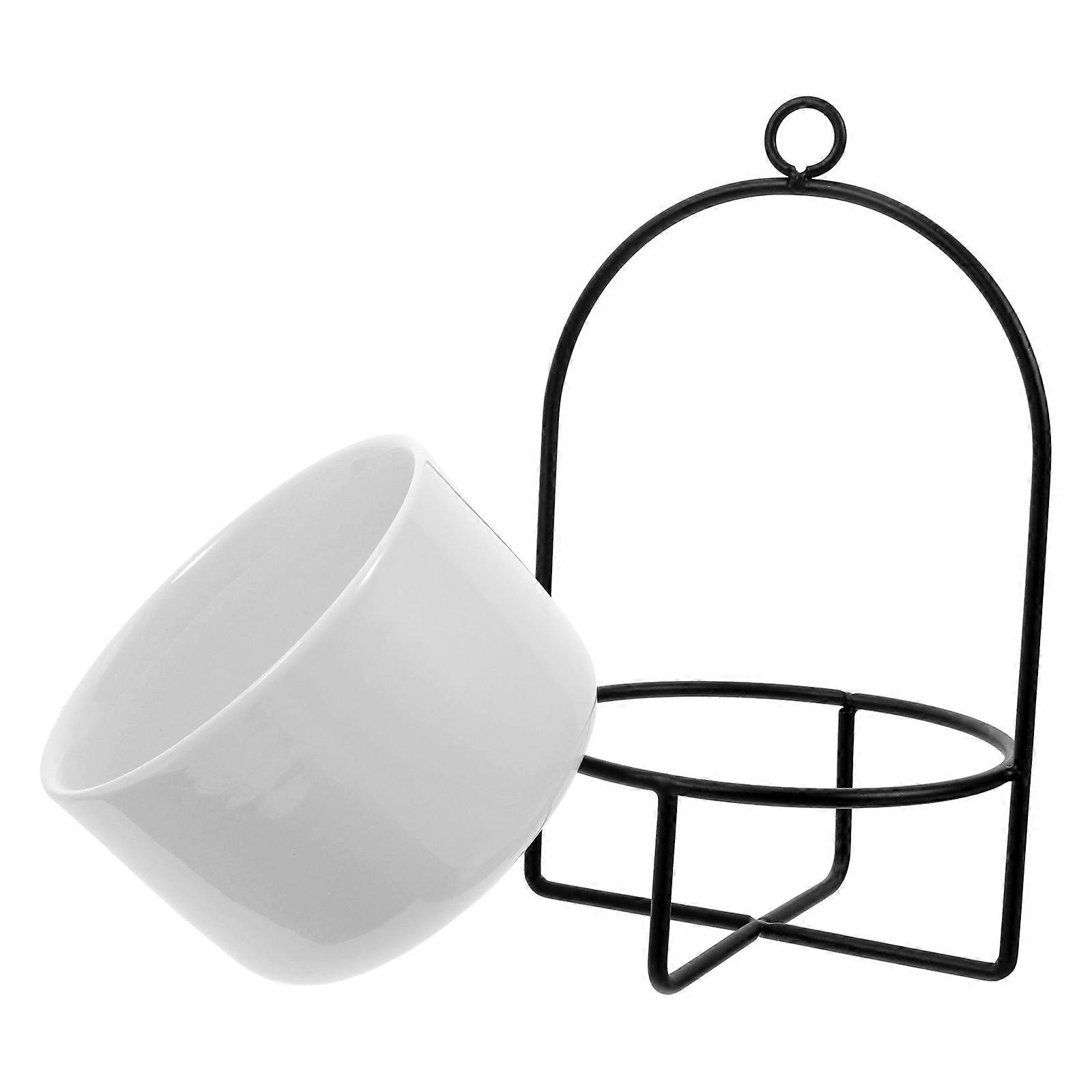 Flower Pot Hanging Wall Mounted Iron Flower Rack Ceramic Flowerpot Home Interior Decor Black Frame White Flowerpot 1Set