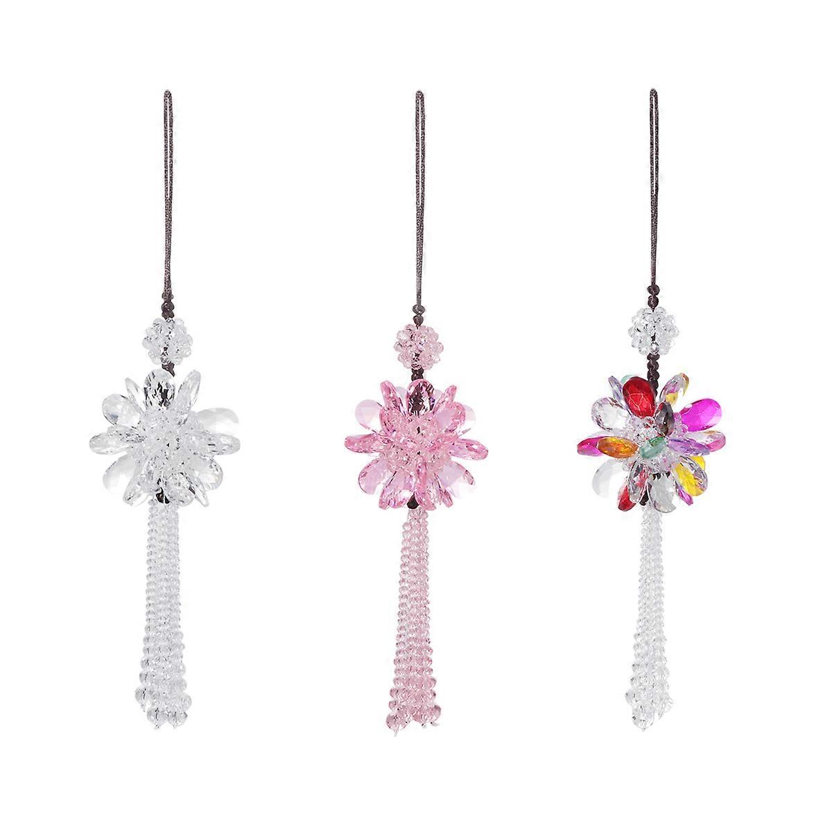 Car Hanging Pendant Crystal Flower Decoration for Car Use Pink