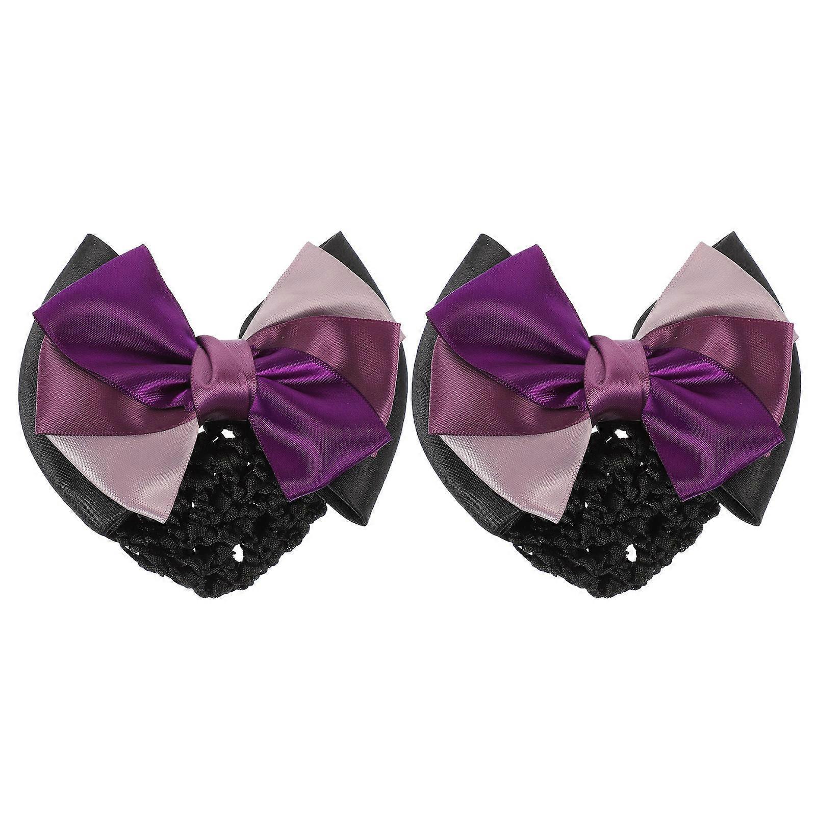 Women Bun Net Bow Bun Hair Net Elegant Stewardesses Airplane Oxford Cloth 11.2x10.5x3.5cm 2Pcs