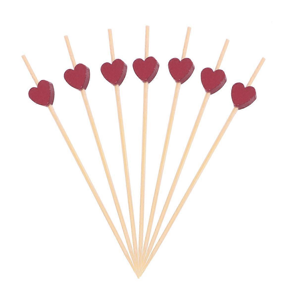 200Pcs Red Fruit Picks Bamboo Cocktail Picks for Eating Use Heart Shape