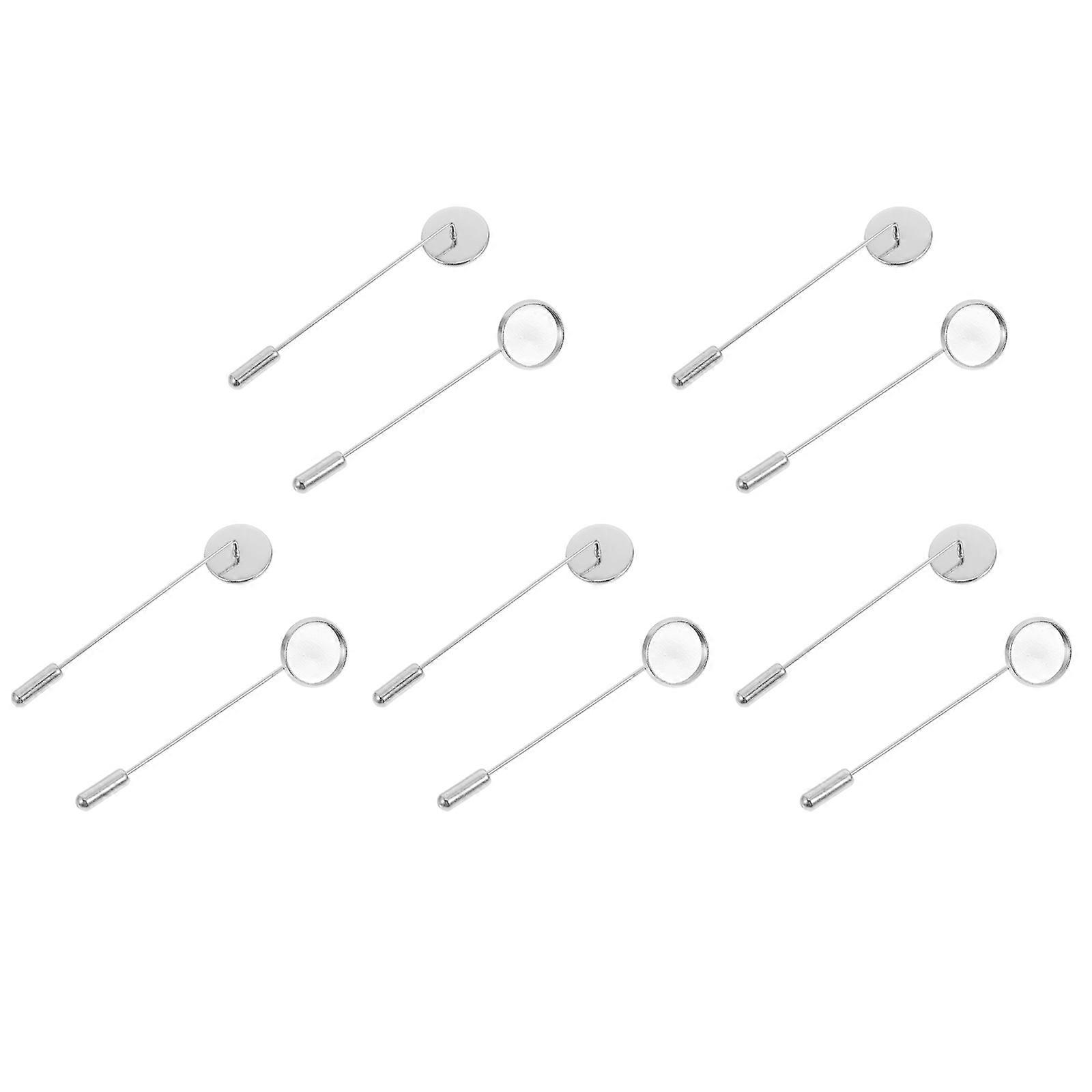 Brooch Tray Round Pin Base for Brooch Making Long Pin 10Pcs Silver Alloy