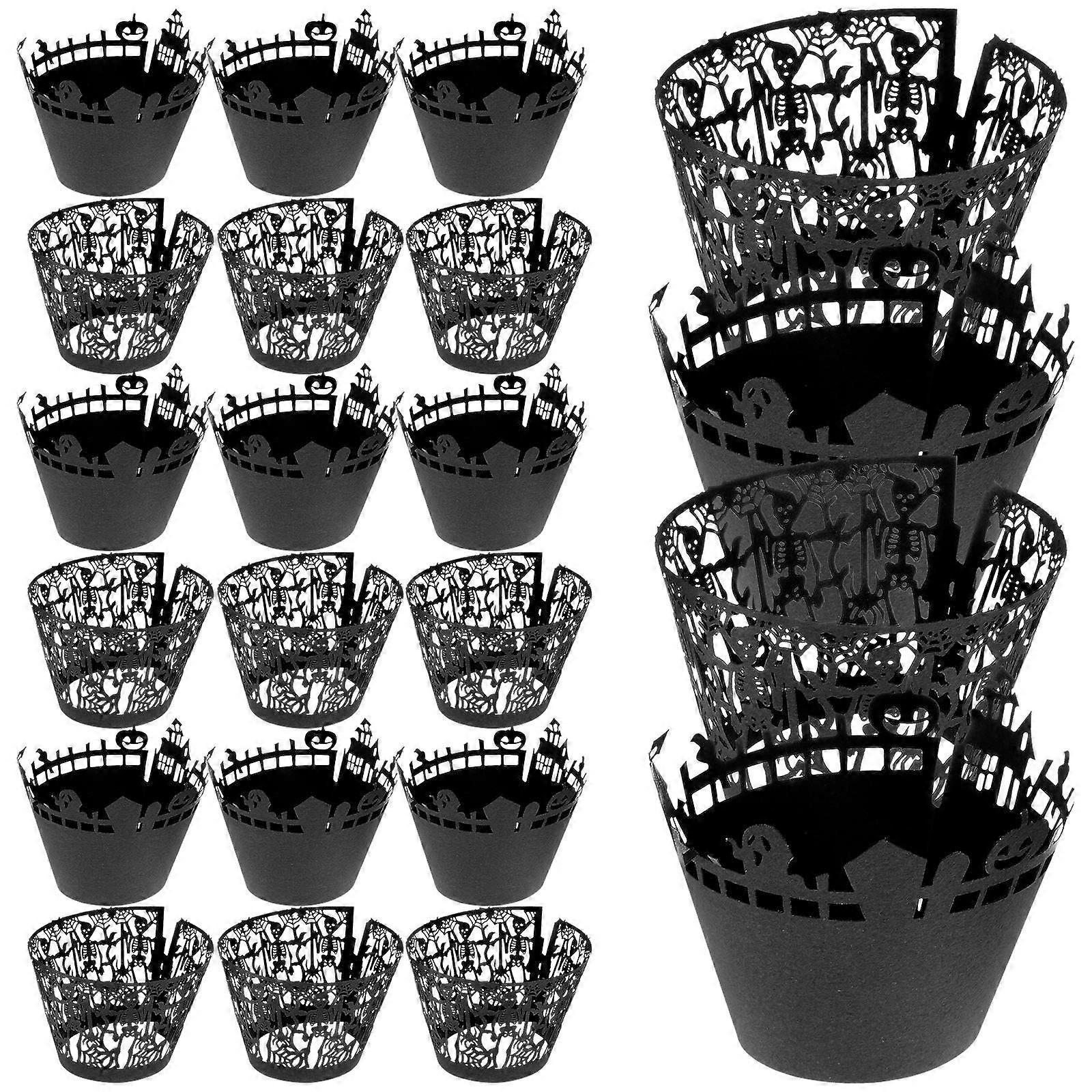 This item is a set of cake wrappers, which is made of , hollow out pattern design with Halloween theme, ensure its popularity and practicability. Perfect for cupcake, baking, muffin etc. Widely used for Halloween party. Features - Color: Black. - Material: Paper. - Size: About 5.00X5.00X8.00cm/1.97X1.97X3.14inch. - Made of paper material, and . - Perfect for cupcake, muffin, cake decoration in various themed parties during the Halloween party, horrible theme costume party, Ghost Day and etc. - Allows you to add your own decor to cupcakes, muffins, sweets, cakes, chocolate desserts and much more. - Great accessory to create a Halloween atmosphere in baking. - Wonderful decoration for cake. Make the cake more delicious. Package list: 18 × Spider Web Shape Cake Cup 18 × Castle Shape Cake Cup