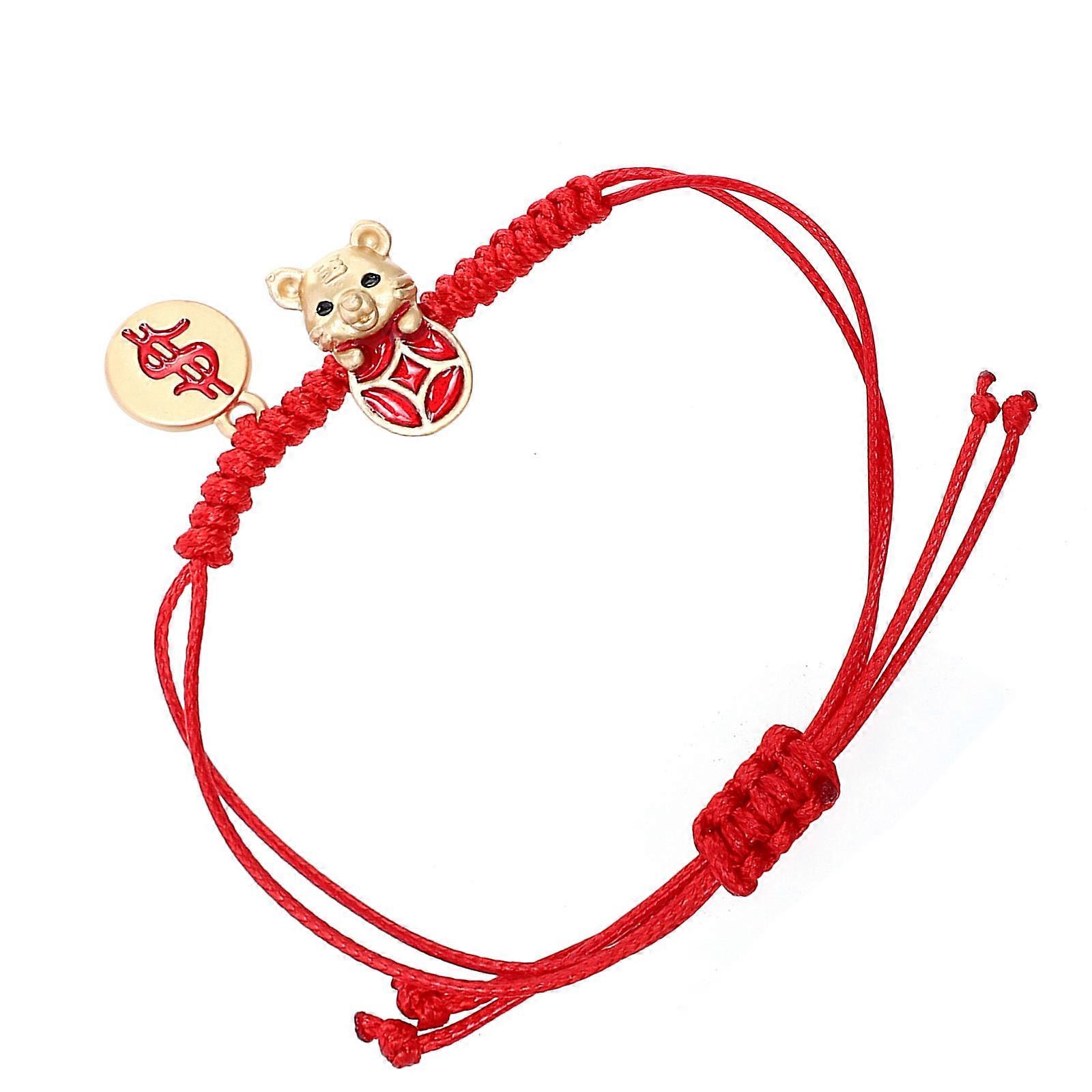 Red Rope Bracelet for Decor with Tiger Charm and Adjustable Rope