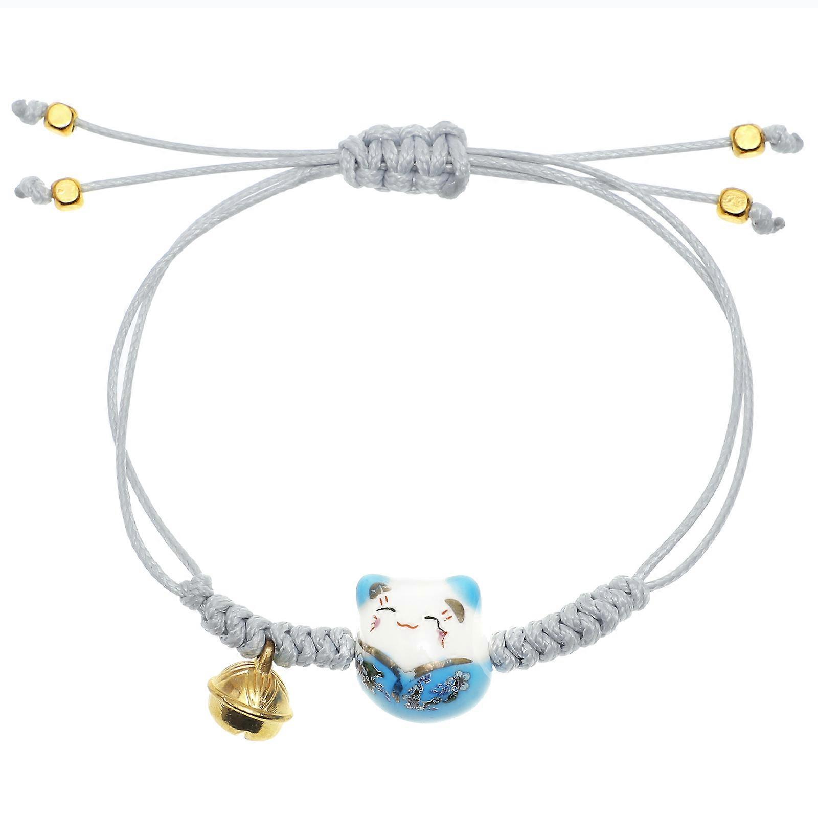 Woven Bracelet Cat Charm Adjustable Bracelet 1Pcs Blue String for Women