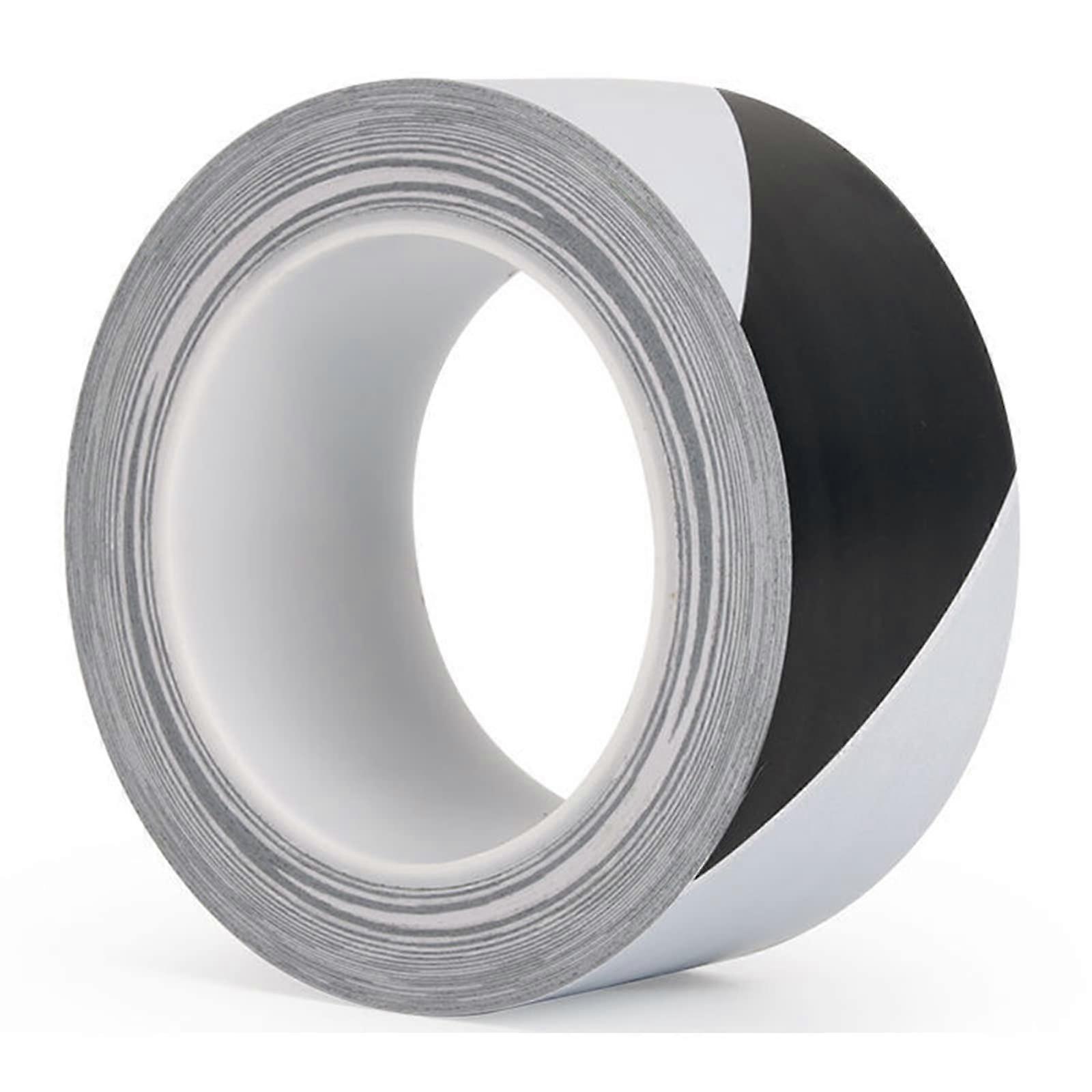 Black and White Hazard Warning Tape 48mm x 33m Self Adhesive Safety Floor Marking for Social Distancing
