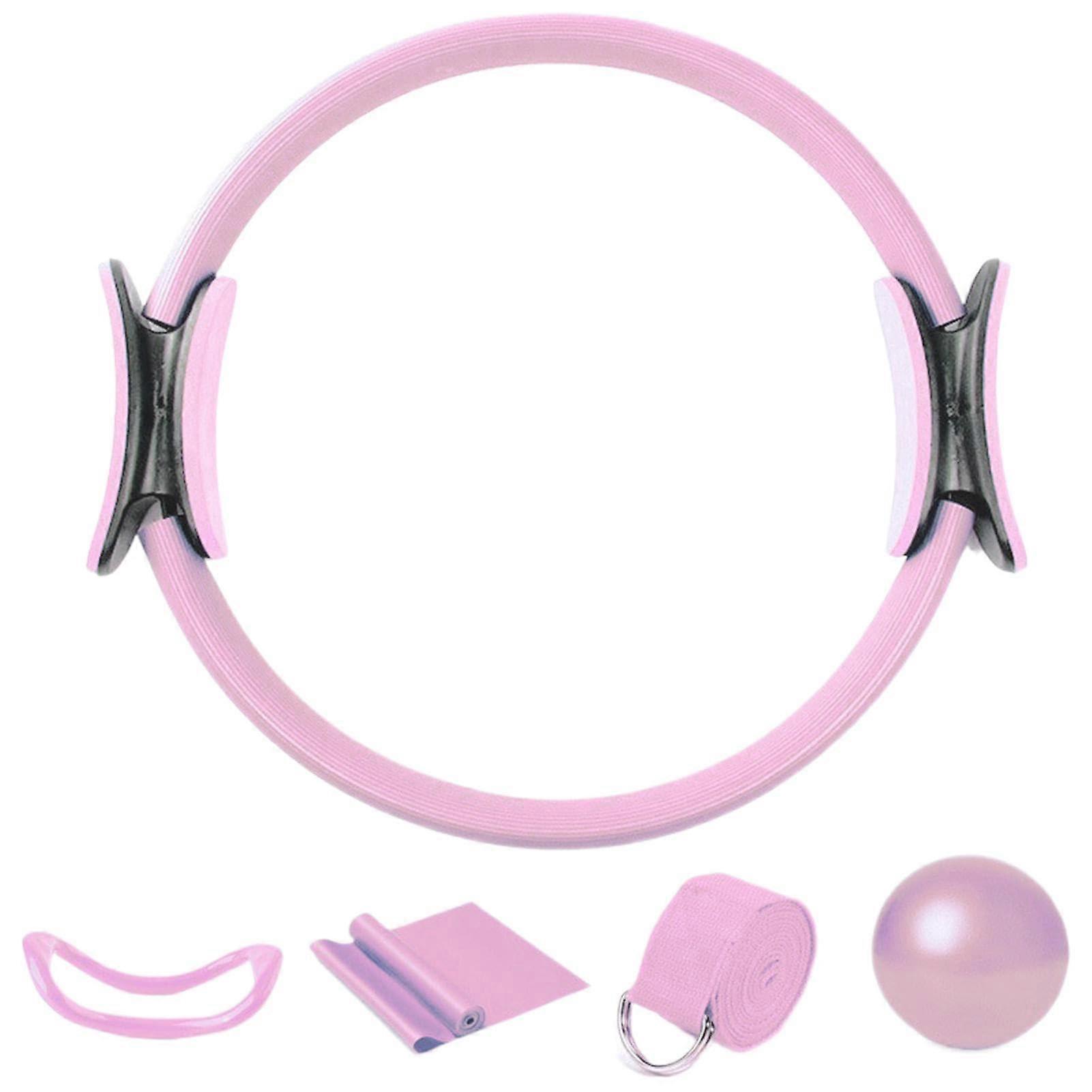 Pilates Ring Set 5Piece Yoga Fitness Accessories Kit with Ball and Bands for Full Body Home Workout Pink