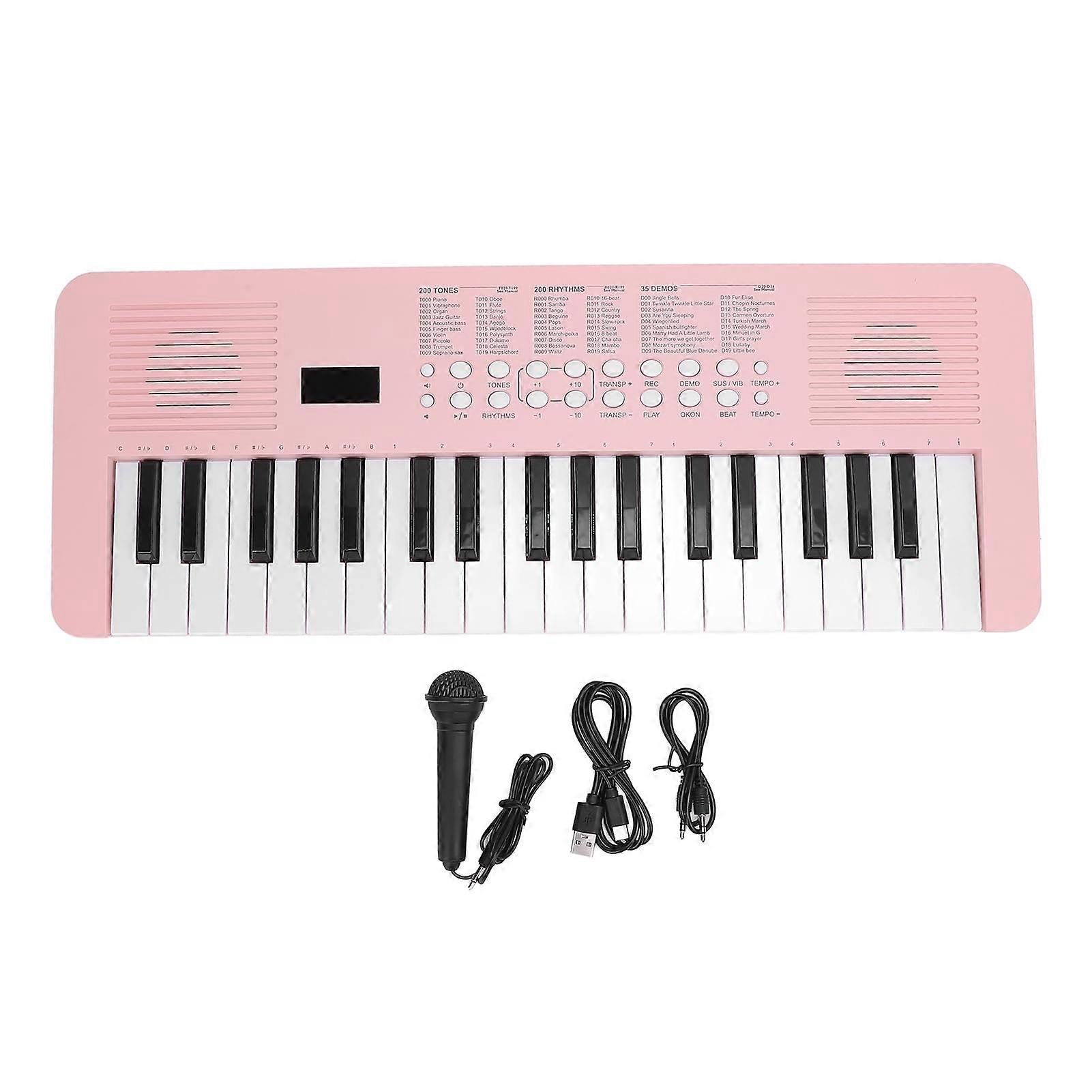 37 Key Pink Digital Piano Keyboard with Microphone, 200 Tones and Rhythms, Song Recording for Beginners