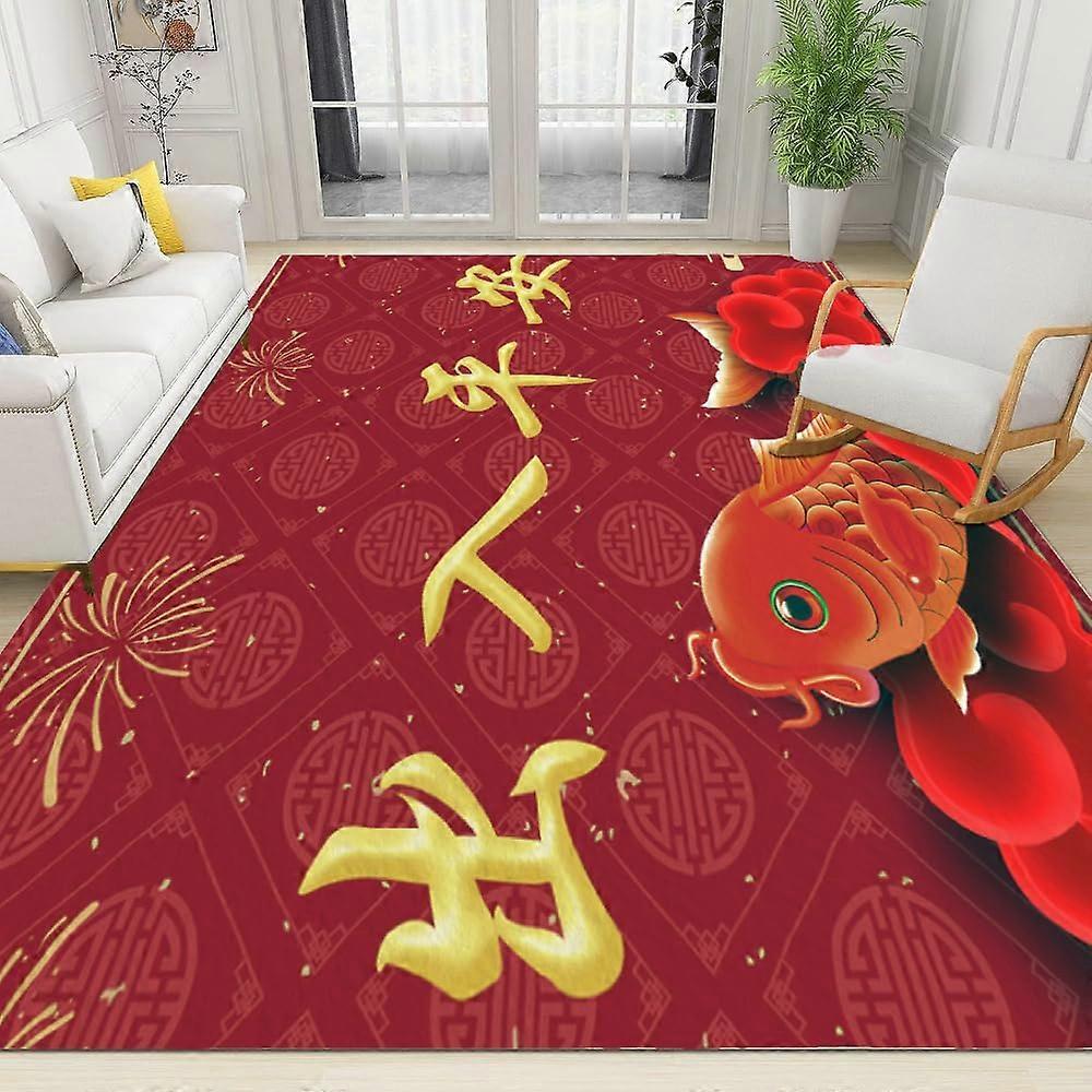 Red Runner Rug 2x4 with Chinese Characters, Non Slip Washable Entryway and Hallway Carpet