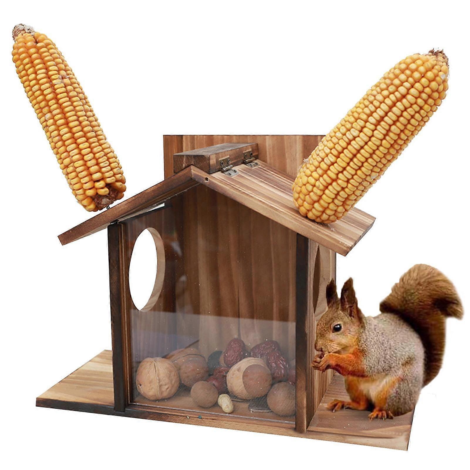 Squirrel Feeder with Weatherproof Flexible Roof, Large Wooden Wildlife Feeding Station for Garden