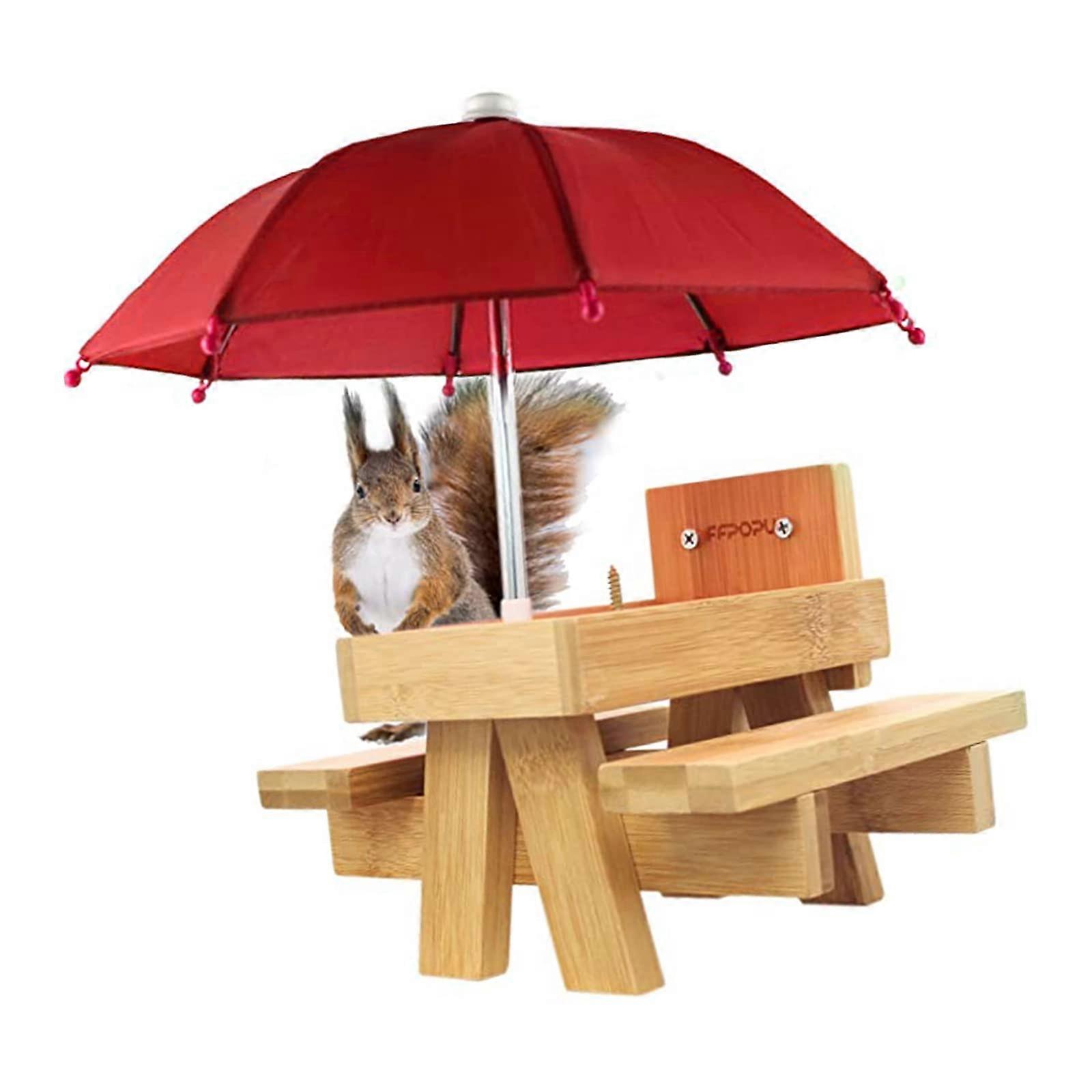 Wooden Squirrel Feeder with WeatherProtective Umbrella for Garden Yard Tree Wildlife Viewing