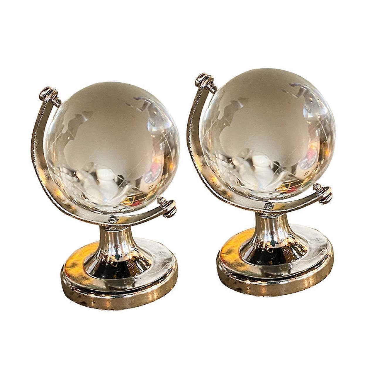 2pcs Mini Crystal Globe Decor with Clear Glass Base, Compact World Desk Ornament for Home and Office