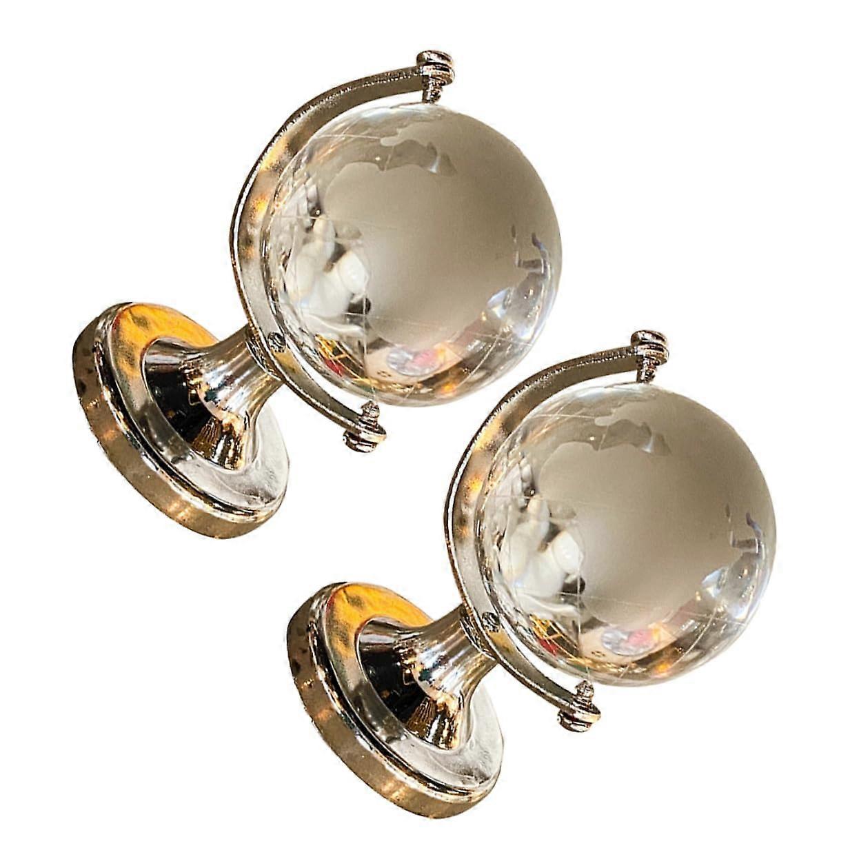 Mini Transparent Glass Desktop Globe Rotatable Crystal World Globe Ornament for Home Office Decor