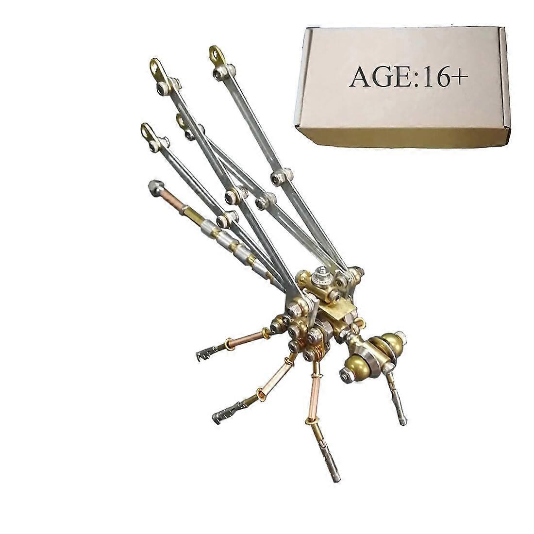 Metal Damselfly Model Kit A metal desktop model that recreates the slender shape and iridescent wing look of a damselfly with intricate mechanical detail. Designed for a satisfying handson build and an attractive finished display piece. Key features Color: Damselfly Material: Metal Finished size: 11 x 6 x 7 cm Product weight: 100 g Parts: 162 lasercut components Assembly difficulty: Simple Typical assembly time: about 40 minutes Construction: screw and bolt assembly, no glue required Edges: polished, rounded for comfortable handling Packaged dimensions: 20 x 14 x 4 cm Package weight: 200 g Packing: Box Recommended age: 15 and up What makes it useful Engaging handson project: 162 burr metal parts and a clear illustrated manual provide a focused, constructive activity that can be completed in one session. Durable and displayready: Allmetal construction and refined metallic texture produce a tactile and visually striking model suited for desktop or shelf display. Safe, neat assembly: Lasercut parts with polished edges and screw and bolt construction reduce the need for adhesive and make handling easier and cleaner. What it solves Provides a compact, lowfriction hobby project for beginners and hobbyists who want a quick, rewarding build. Creates a sturdy, attractive decorative piece without complex tools or messy glue. Offers a practical way to develop basic assembly skills and mechanical understanding through an accessible model. Included in the package Model parts kit x1 Illustrated assembly instructions x1 Suggested uses Desk decoration: Place on a work desk or bookshelf as a lightweight, eyecatching accent. Skillbuilding project: Use as an introduction to metal model assembly and basic fastener techniques for hobbyists or students. Gift for hobbyists: A compact and readytobuild kit for someone interested in mechanical models, steampunk aesthetics, or ornamental metalwork. Assembly notes No glue required; follow the illustrated manual for stepbystep guidance. Expect about 40 minutes for assembly under typical conditions; time may vary with experience. Recommended for ages 15 and up due to small parts and manual assembly.