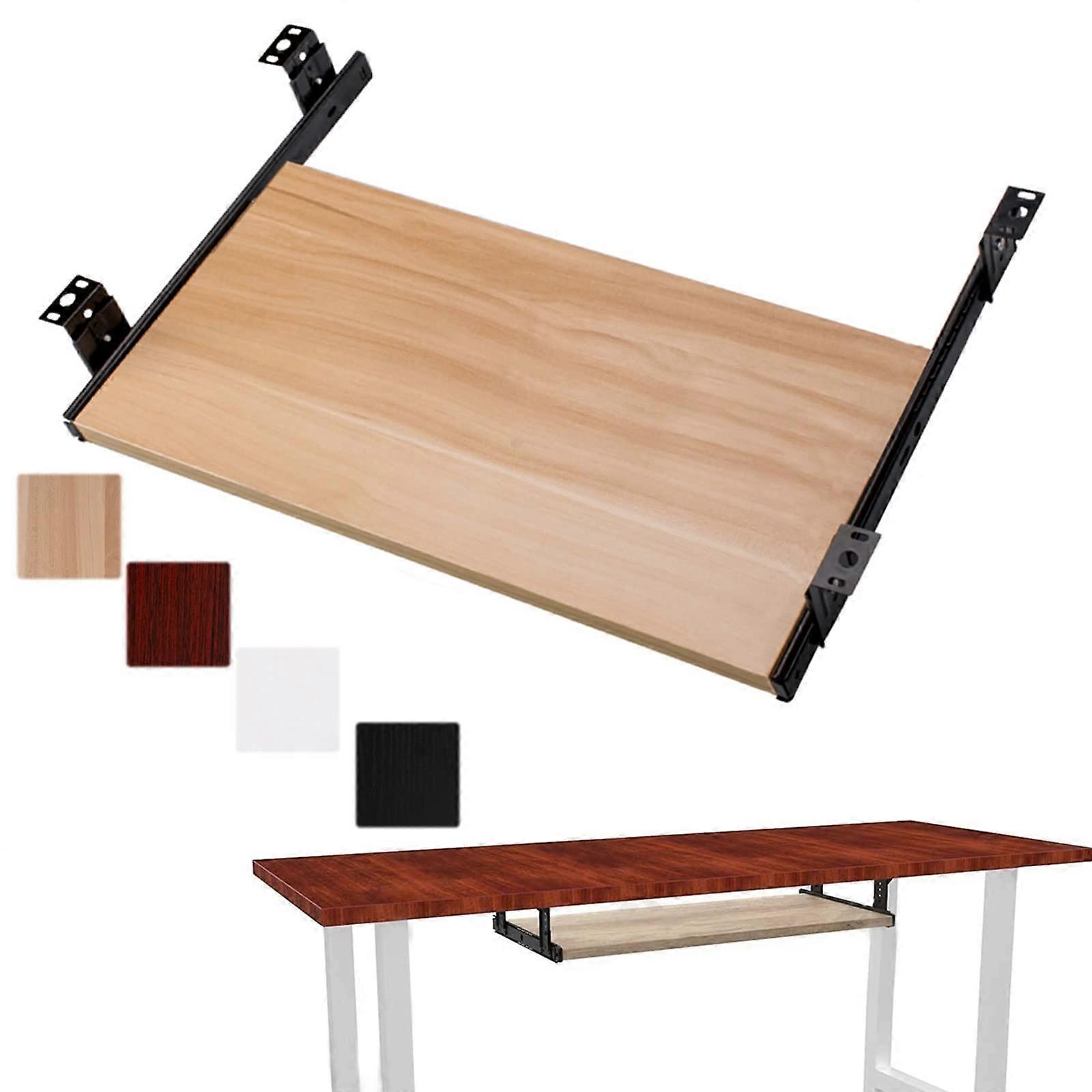 Under Desk Keyboard Tray with Smooth Sliding Rails, Height Adjustable Ergonomic Wooden Shelf, Black 54x27cm