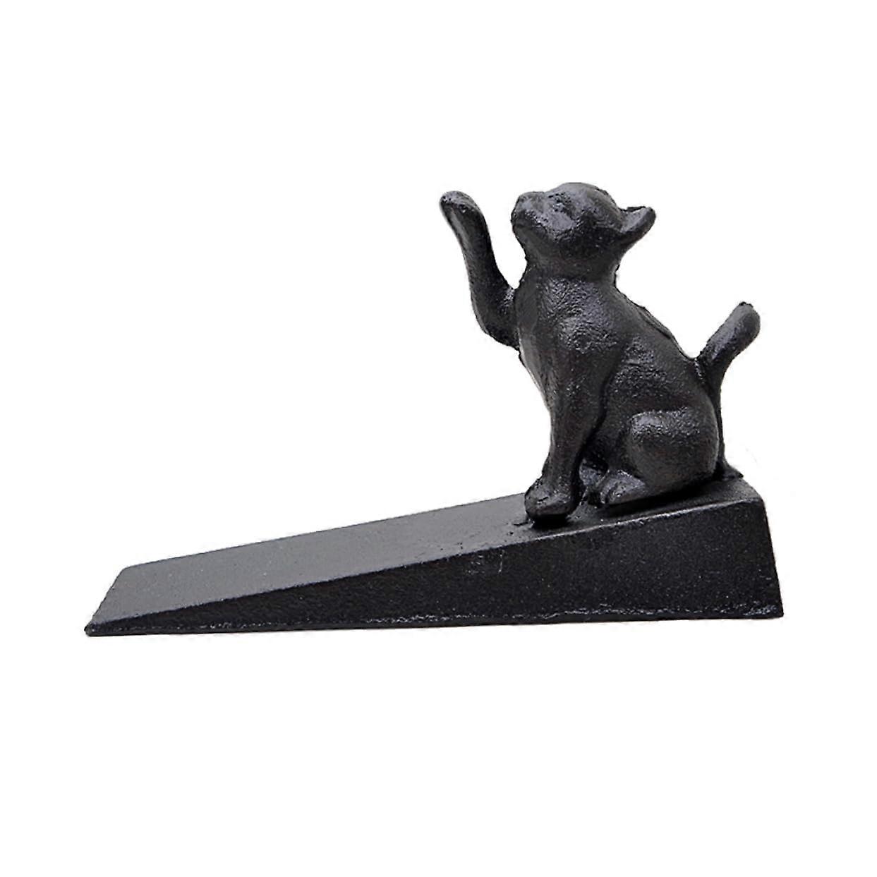 Cute Iron Cat Door Stopper with Anti Slip Wedge Base, Durable Decorative Door Holder for Home