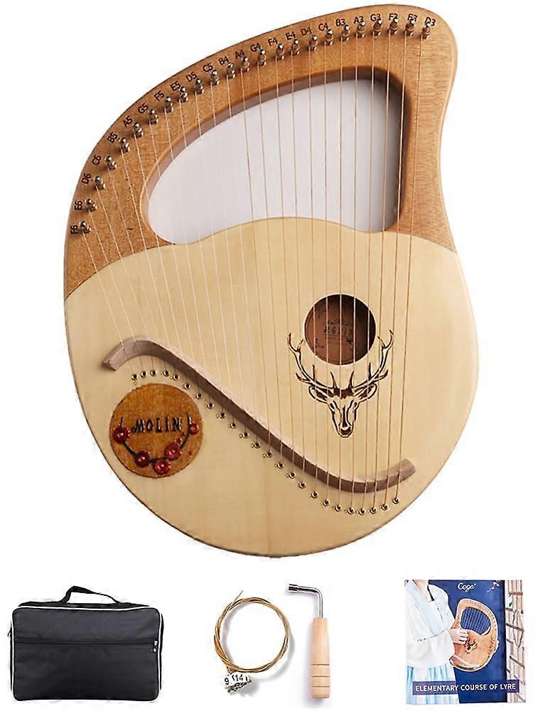 24 String Mahogany Lyre Harp with Bag Tuning Wrench Rich Tone Beginner Starter Kit Burlywood