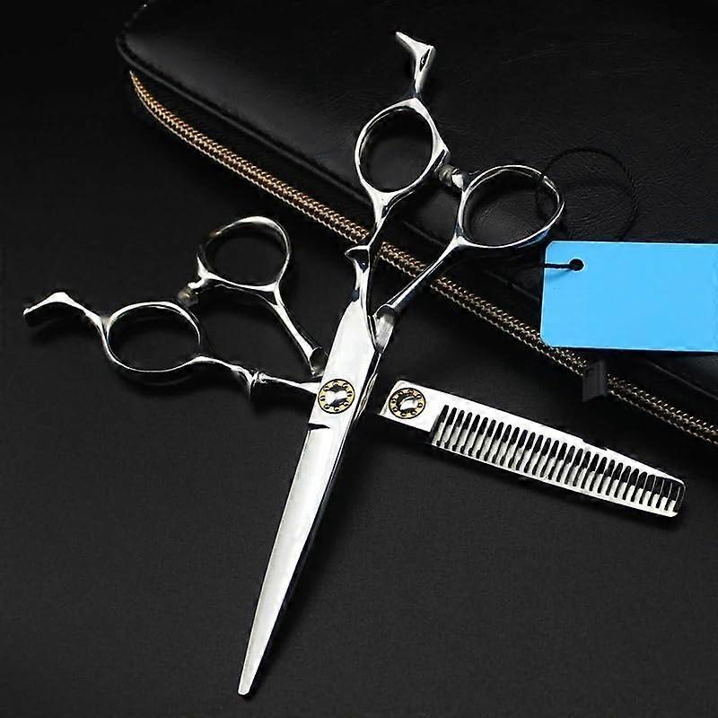 Professional 440C stainless steel hair cutting scissors set designed for barbers and hairdressers who need precise, durable tools. What you get 1 cutting scissor 1 thinning scissor Scissor bag included Key benefits Clean, precise cuts: Ultrasharp, handfinished blades cut instantly for smooth, even results on both dry and wet hair. Longlasting durability: 440C stainless steel construction and a blade hardness of up to 62HRC deliver wear resistance and reliable performance during regular use. Reduced hair catch: Tight blade alignment and fine edge finishing minimize hair getting stuck between the blades, reducing pull and uneven cutting. Comfortable handling: Lightweight design and ergonomic, nonslip curved handles let each finger work independently, reducing thumb pressure and hand fatigue during extended use. Features and specifications Material: 440C stainless steel Blade hardness: up to 62HRC Kit contents: 1 cutting scissor, 1 thinning scissor, scissor bag Blade finish: handpolished through multiple processes for precise cutting edges Design: lightweight, ergonomic curved handles with a nonslip surface Suitable for: both dry and wet hair; professional salon and barber use Performance and use Cutting scissor: precise allaround cutting for general haircuts, layering, and blunt cuts. Thinning scissor: texturizing and blending to remove bulk and create natural movement. Durable edge retention enables frequent use with minimal resharpening. Practical use scenarios Salon haircut: Create clean lines and textured layers during full client appointments with minimal hand fatigue. Barber detail work: Use the cutting scissor for crisp edges and the thinning scissor for softening lines and blending fades. Home or travel kit: Lightweight set with included scissor bag for stylists on the go or clients maintaining styles between appointments. Why choose this set Combines precise, handfinished blades and a hardness steel for consistent, professional results. Ergonomic design reduces strain for professionals who use scissors all day. Complete kit with both cutting and thinning tools plus a storage bag for organized, portable use.
