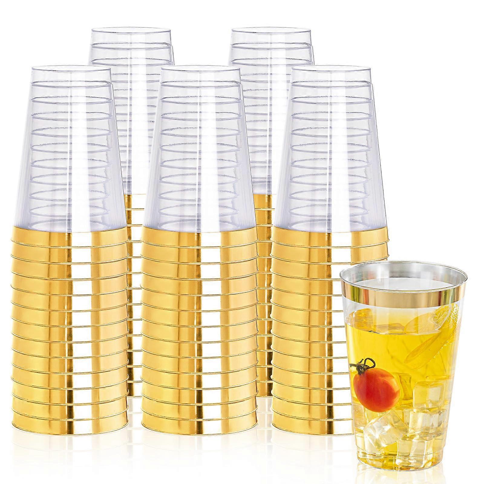 100 Pack 18oz Gold Plastic Cups with Elegant Gold Rim, Disposable Party Drinkware for Weddings