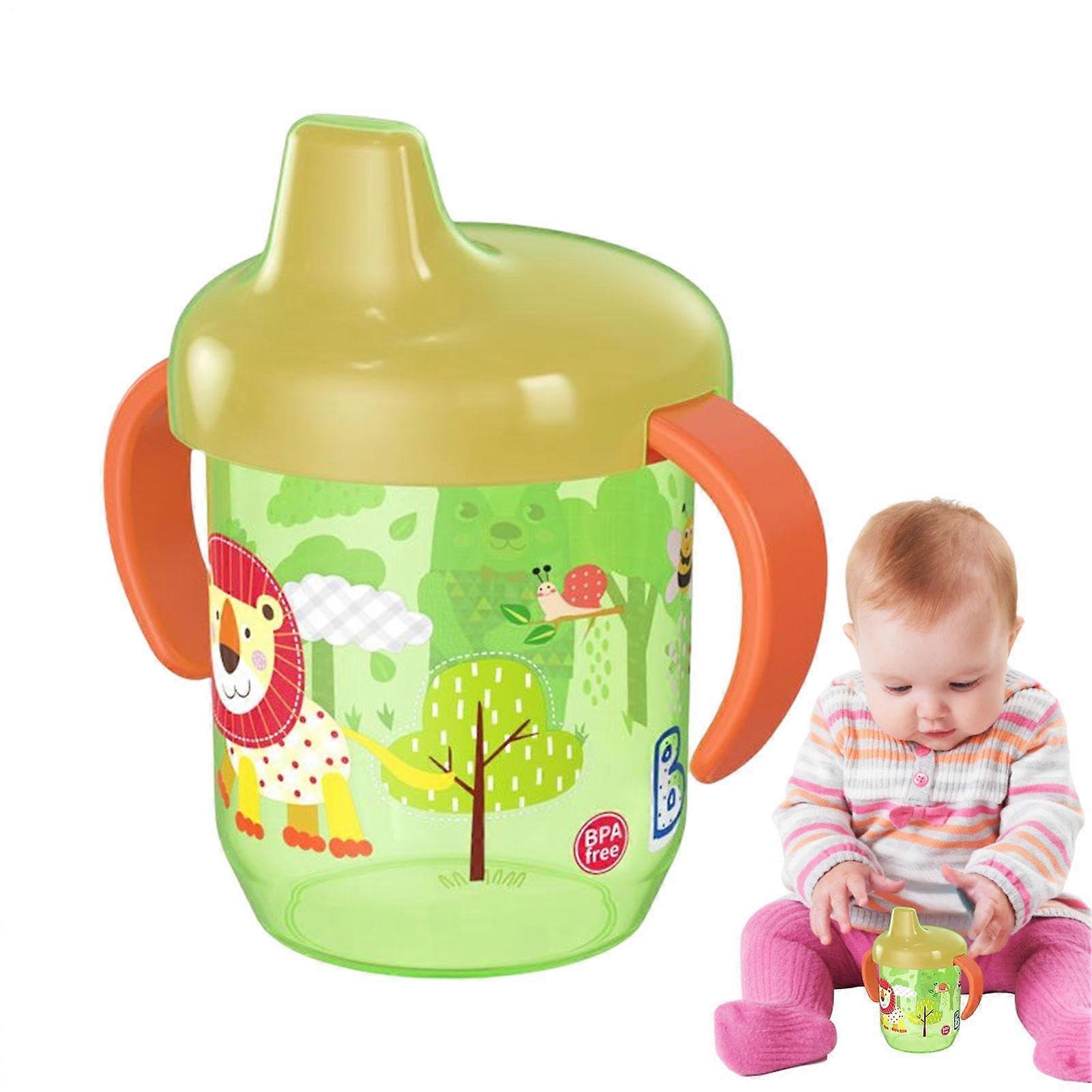 Toddler Sippy Cup with Handles Spill Proof Kids Straw Cup Cute Animal Design Durable Green