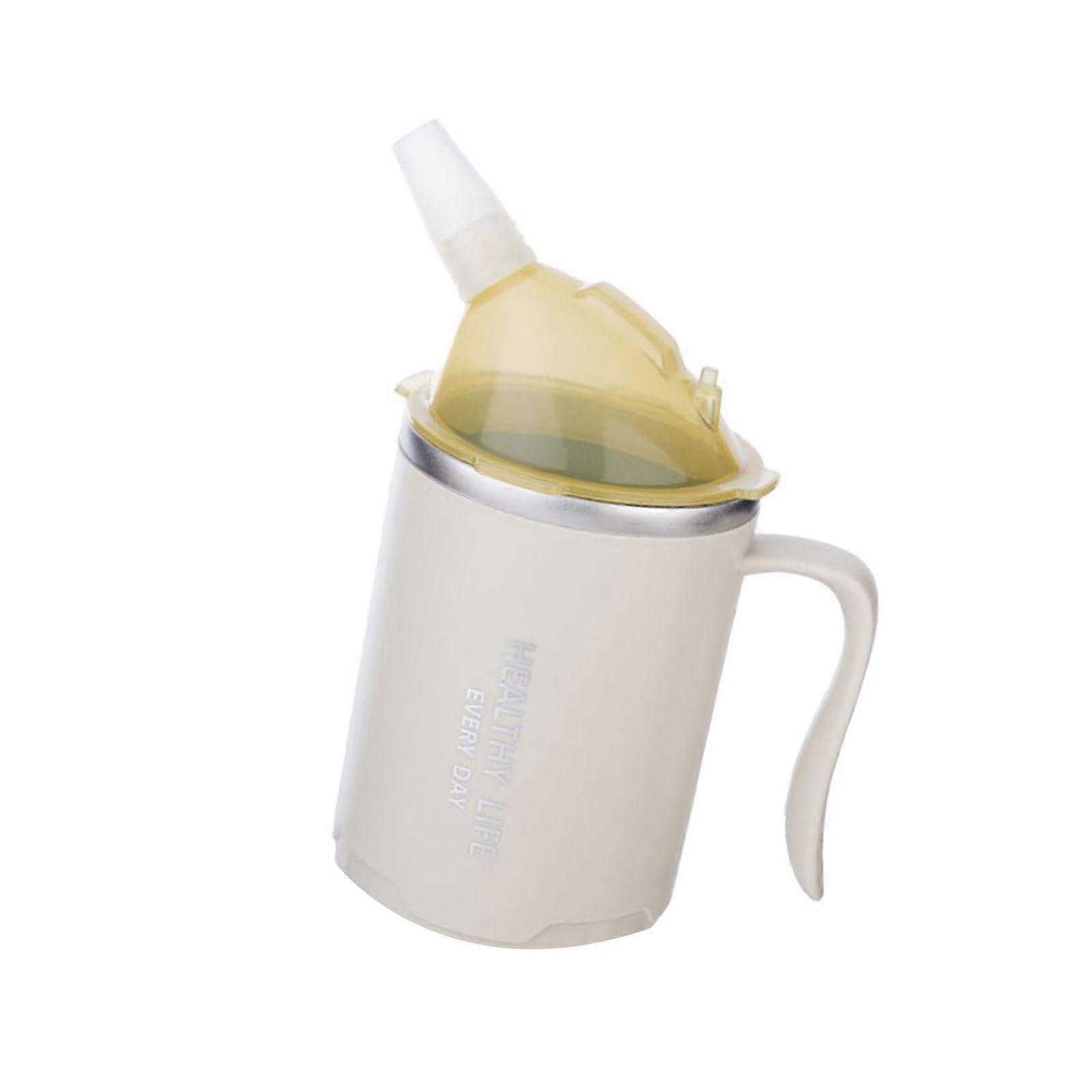 Nursing Cup with Straw, Leak Proof Anti Choke Feeding Cup for Elderly and Bedridden, 400ml Stainless Steel