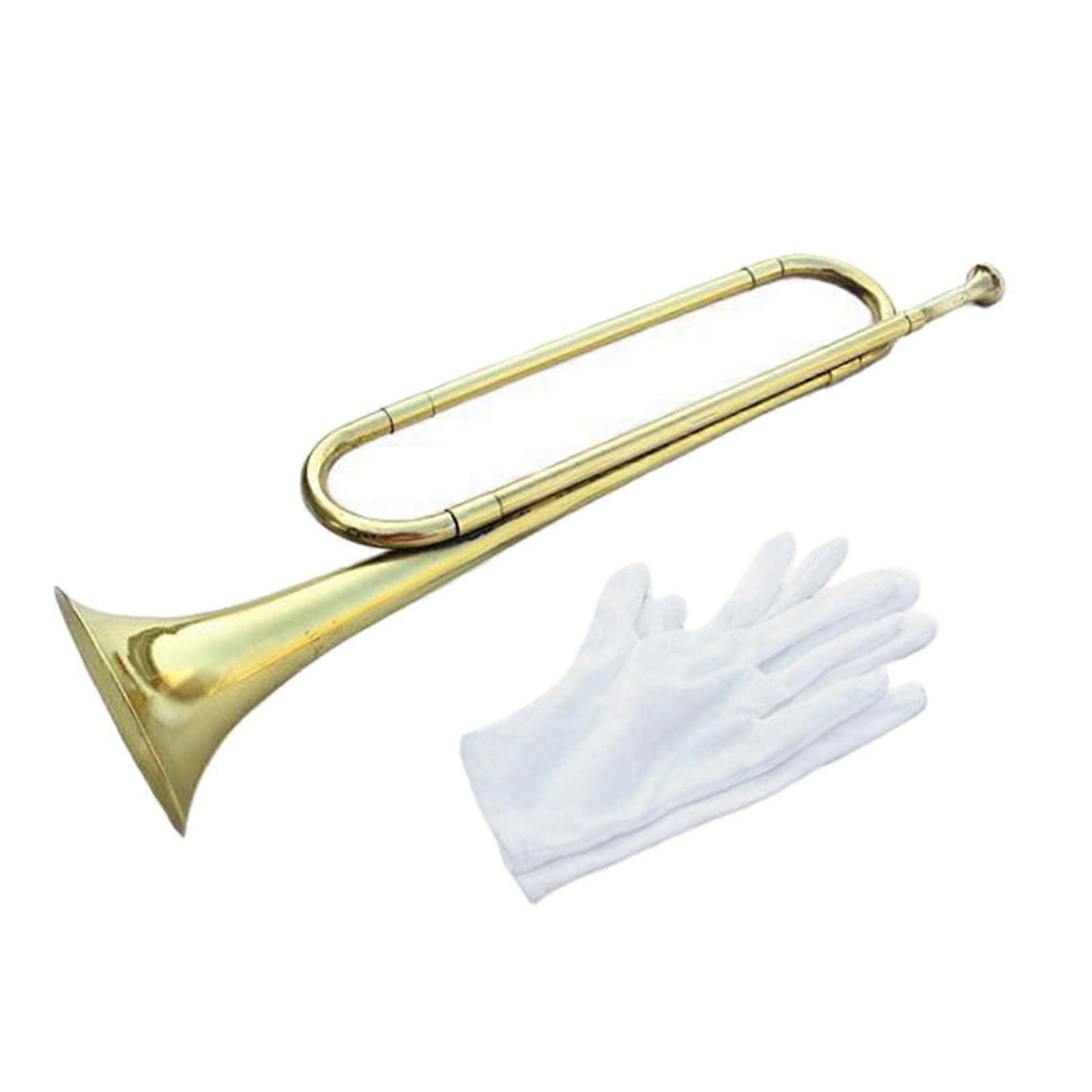 Yellow Brass Bugle Trumpet 47cm Cavalry Outdoor Band Enhanced Sound with Gloves