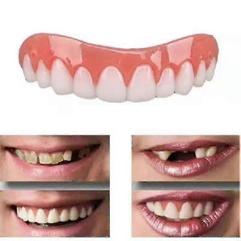 Description No Dental Visit Necessary Our cosmetic teeth help to hide your missing, bent, stained and broken teeth. Freedom to smile, eat and drink while wearing.Wonderful SmileNatural tooth coloring. Improving your smile with a realistic solution, with a realistic look and feel.Nature ComfortableDesigned with ultra-thin flex technology, it looks like a set of perfect teeth and gums. Comfortable and no foreign body sensation. Youll get a natural and confident smile right away. Size AdjustableAdjustable to fits most people after putting into hot (boiled) water before using. Suitable for Most OccasionsWhether its a date, a job interview or a party, you can use these Fake teeth to help you regain confidence and increase your charm.