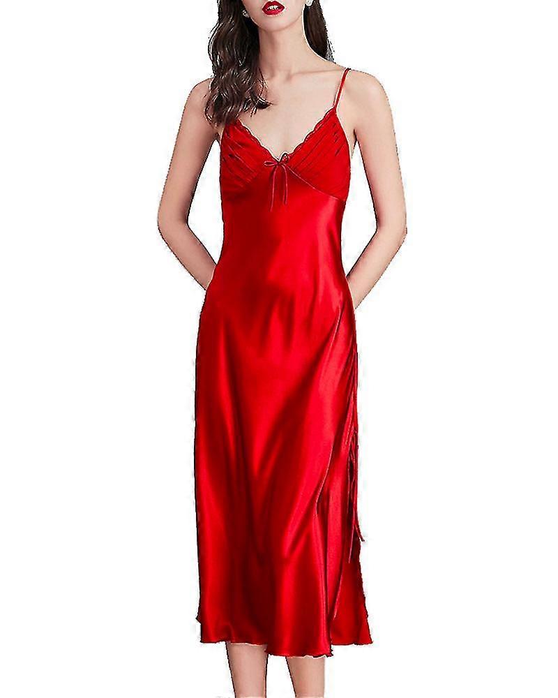 Womens Satin Nightgowns Long Chemise Sexy Sleeveless Side Slip Nightdress Spaghetti Strap Sleepwear S05