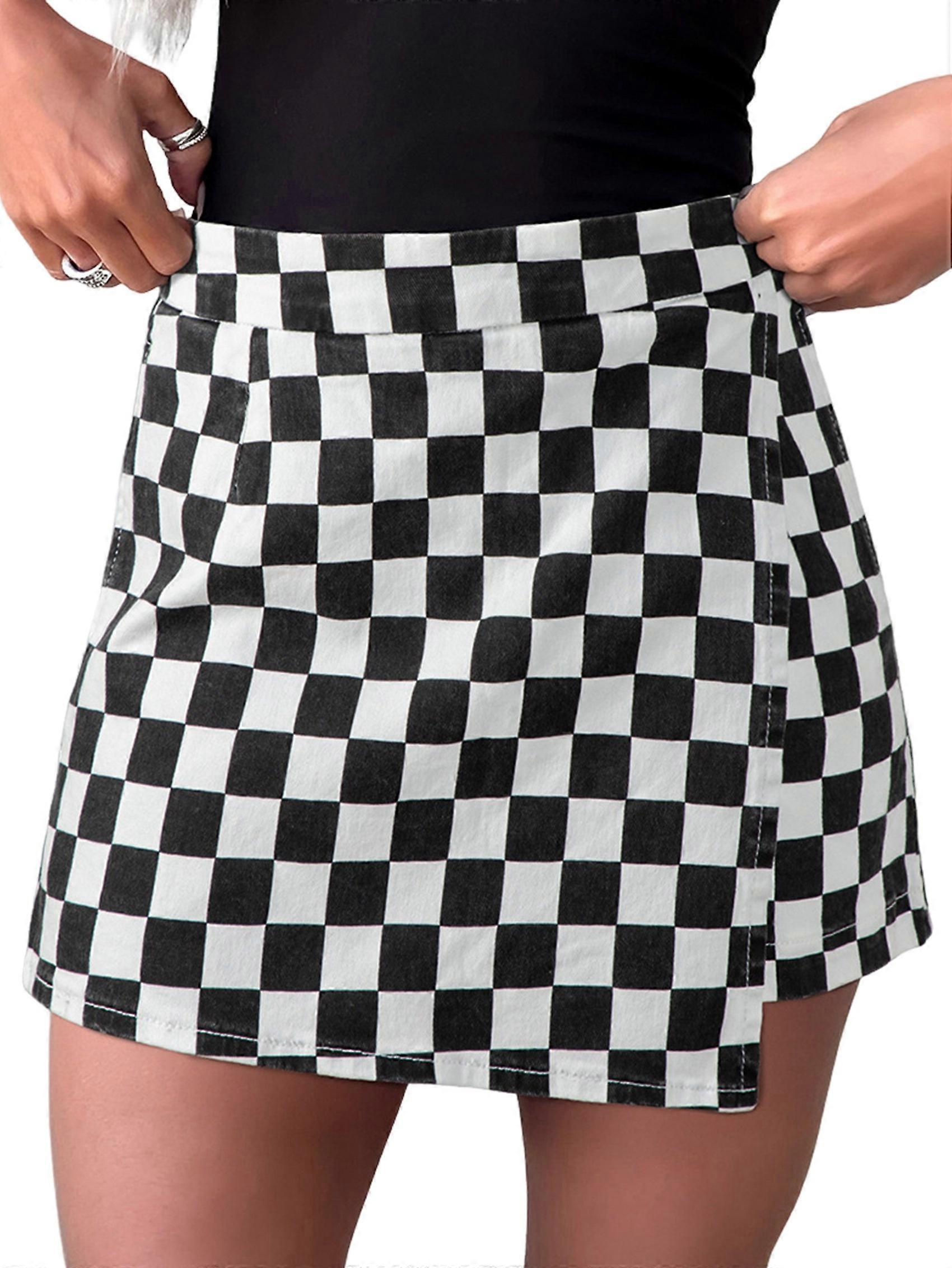 Women'S Plaid Checkered Skorts Mid Waist Wrap Asymmetrical Skirt Shorts LC7832192-P220 XXL