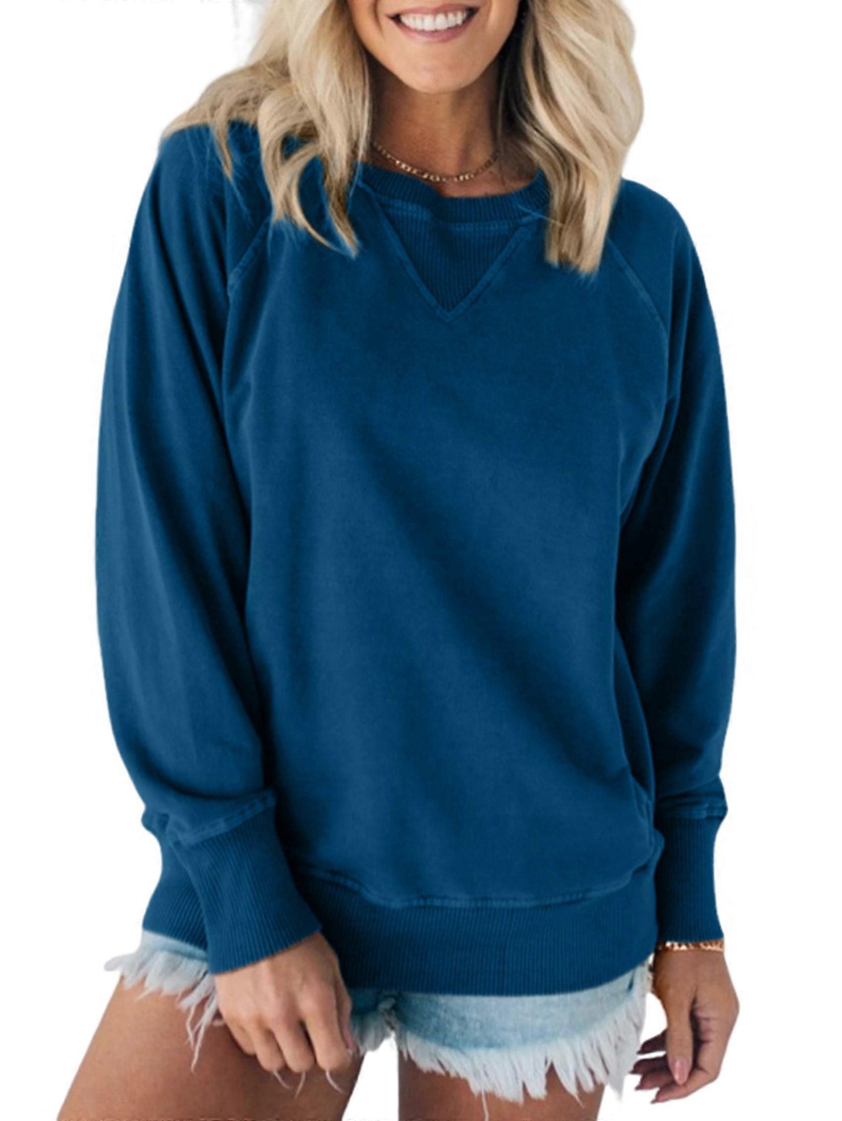 Women'S Sweatshirt Casual Long-Sleeved Crew Neck Pullover Top Loose Sweatshirt Dark Blue L